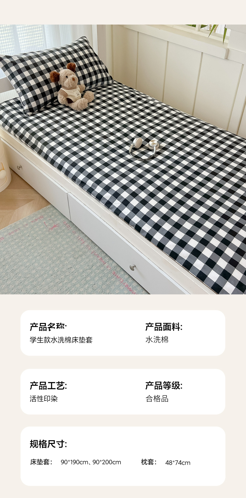 商品名称:(总)2025开学季学生床垫套床褥套褥子套无印风水洗棉简约床垫套寝室宿舍单人90x200床垫套床上用品