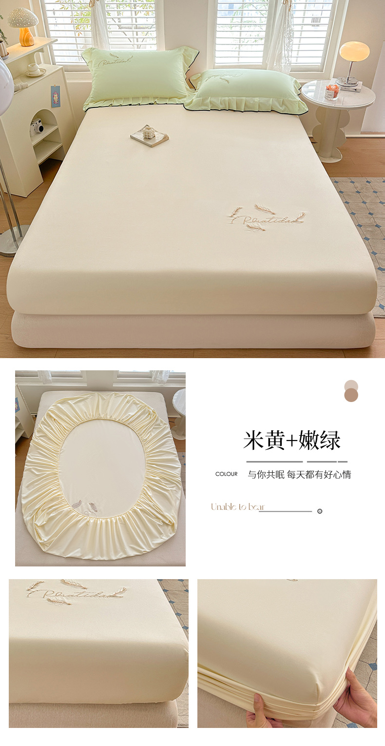 柔享家(原芷澜家纺) 2025新款法式纯色水洗棉刺绣绣花磨毛床笠汇总(有同款四件套) 米黄+嫩绿