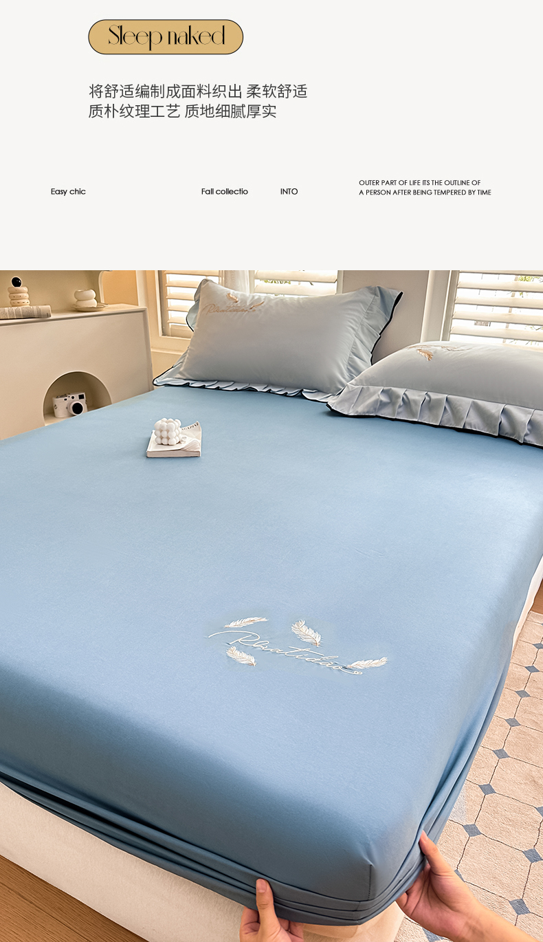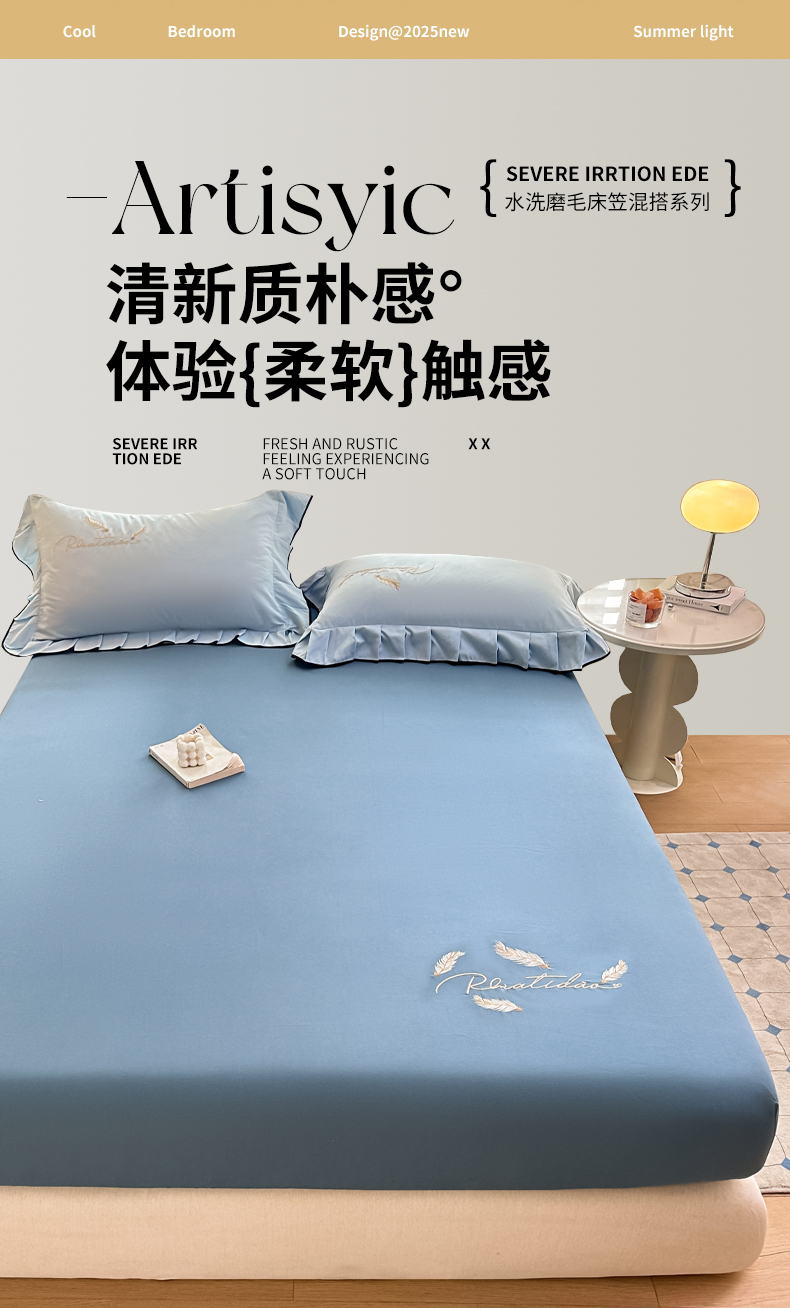 • 91家纺网 家纺一手货源 找家纺 柔享家(原芷澜家纺) 2025新款法式纯色水洗棉刺绣绣花磨毛床笠汇总(有同款四件套) 米黄+嫩绿