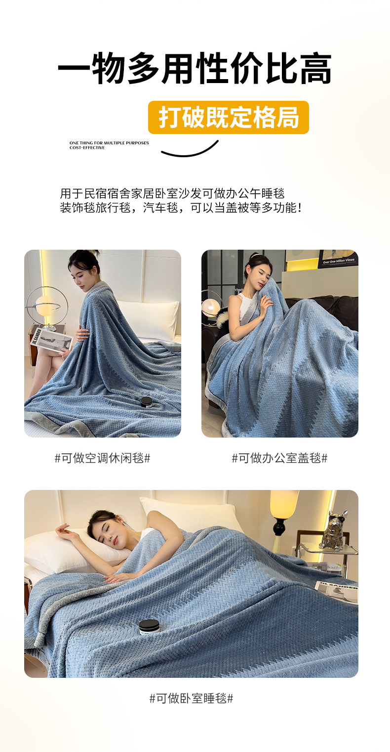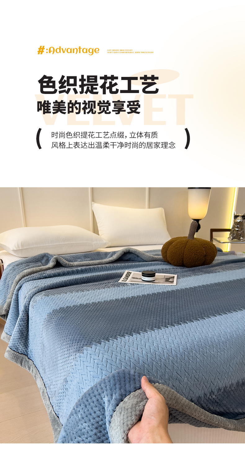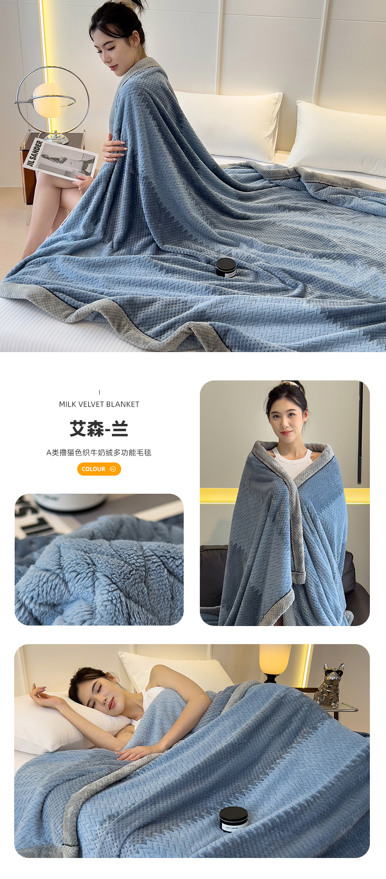 商品名称:世纪绒品 2025新款A类撸猫色织牛奶绒多功能毛毯 艾森-兰