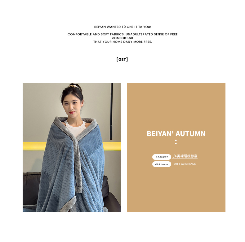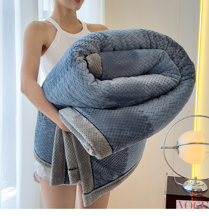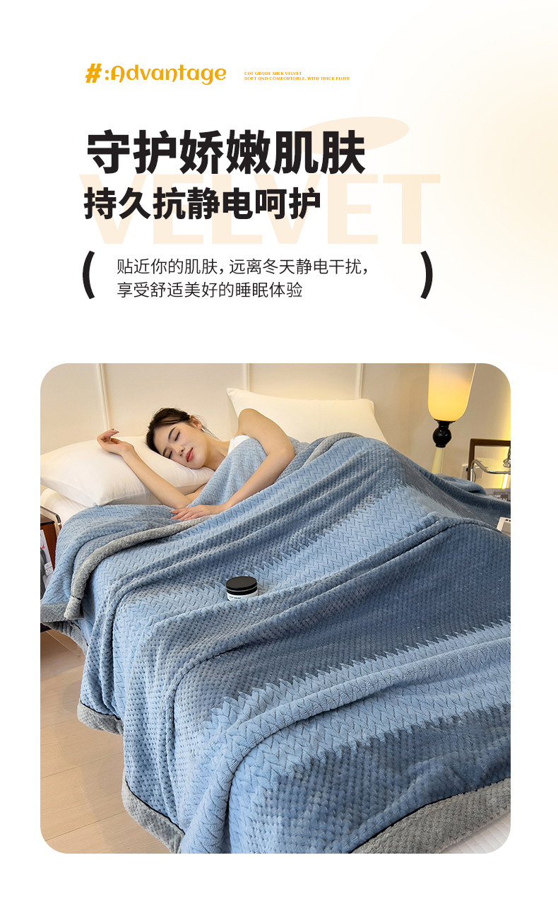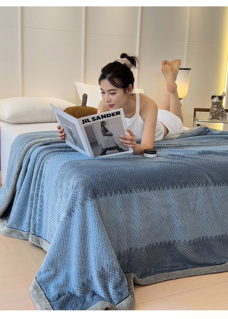 商品名称:世纪绒品 2025新款A类撸猫色织牛奶绒多功能毛毯 艾森-兰
