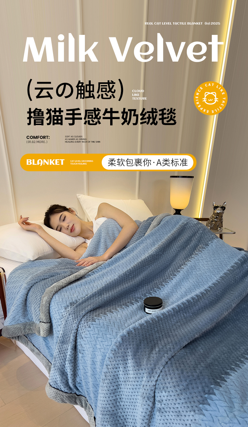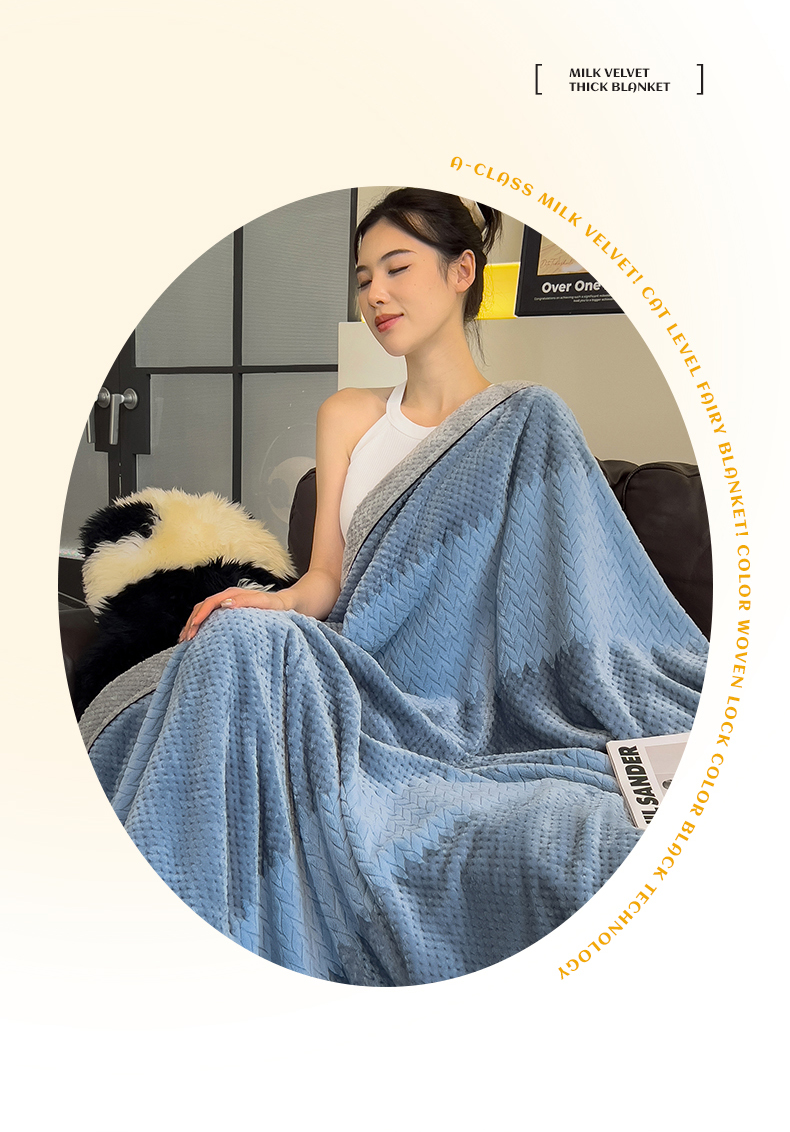 世纪绒品 2025新款A类撸猫色织牛奶绒多功能毛毯 艾森-兰