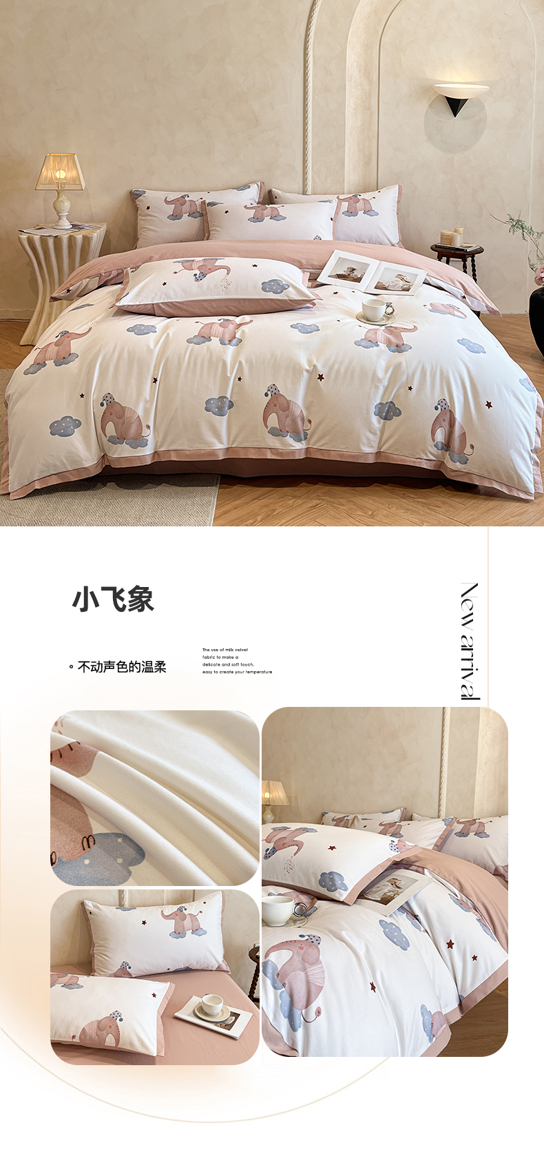 当前位置: 91家纺网 > 商品网购 > 床品套件 > 四件套 > 普通磨毛四件套 > 柠馨2025全棉磨毛印花四件套精致小边款 小飞象