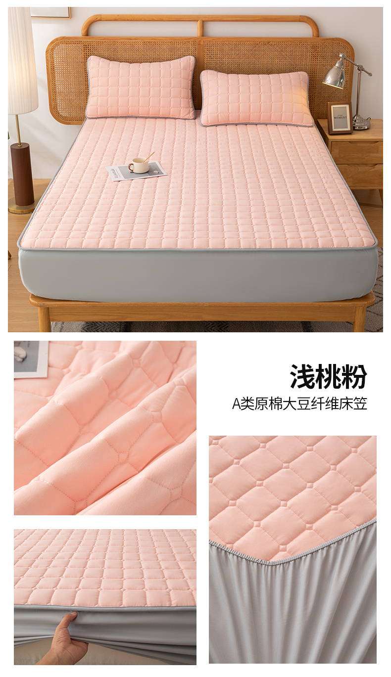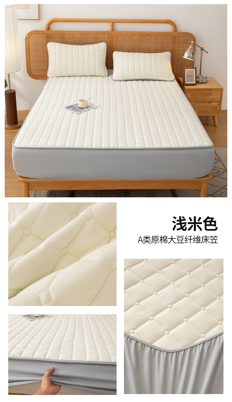 商品名称:拾小柒 2025新款A类原棉大豆纤维加厚床褥子床垫保护垫床笠款 浅米色