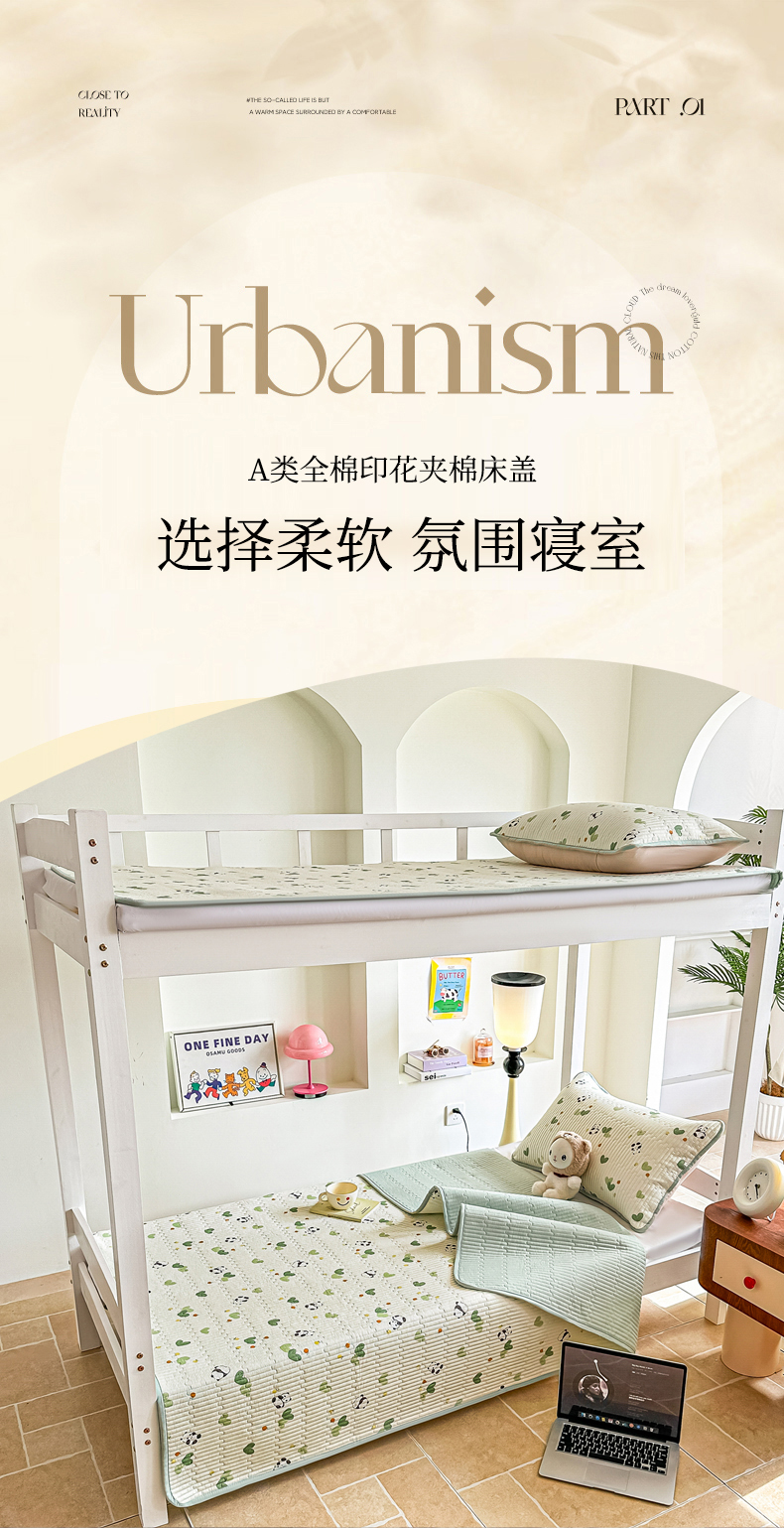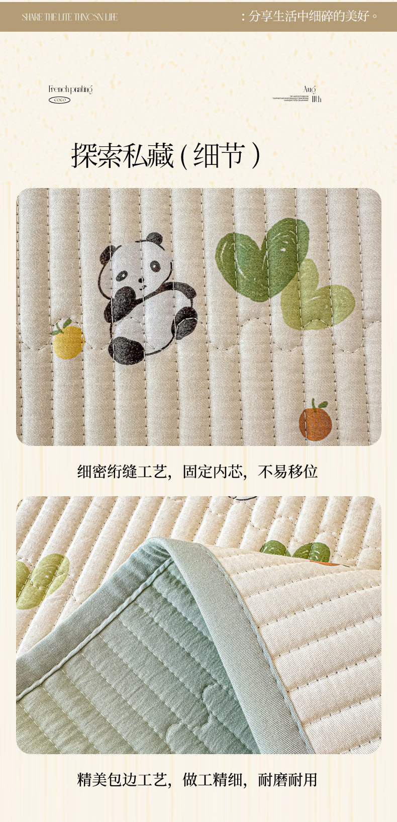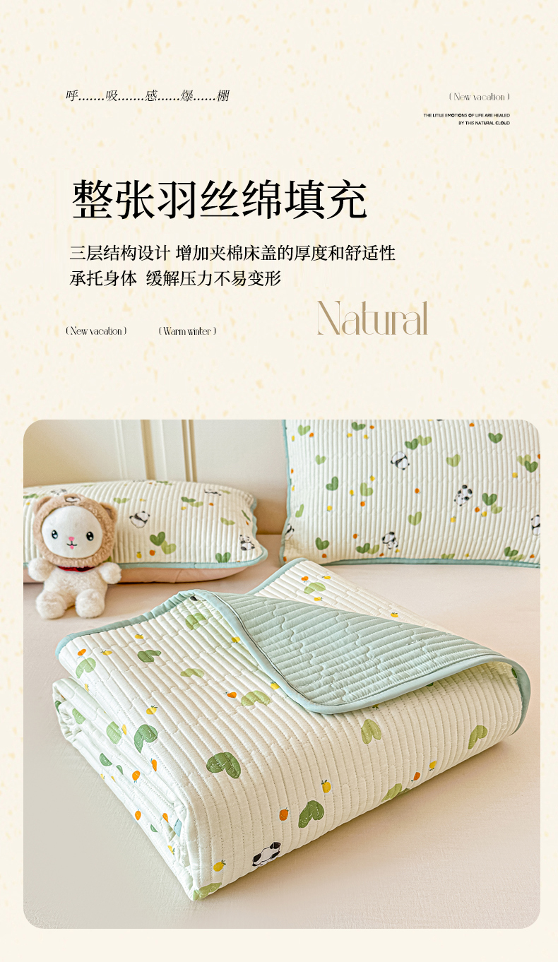 恒尚居 2025新款A类全棉印花夹棉床盖四季款-系列一 【小熊猫】全棉-四季款