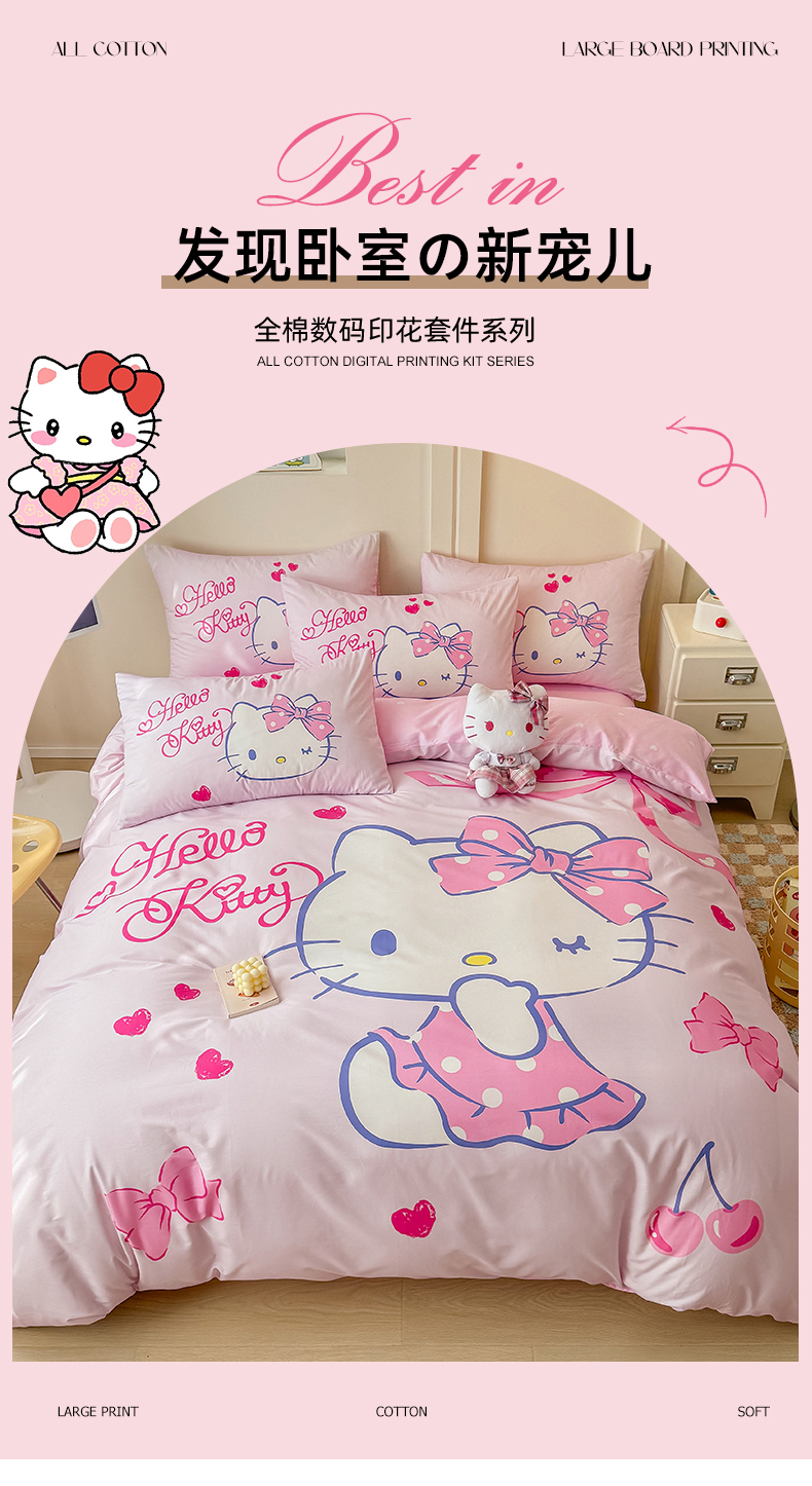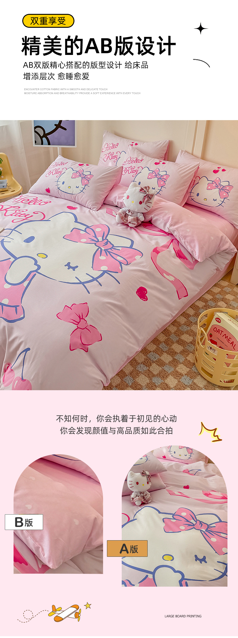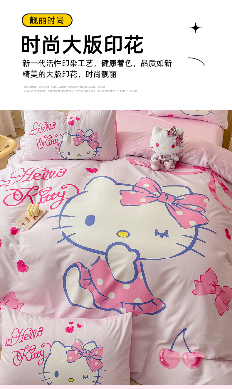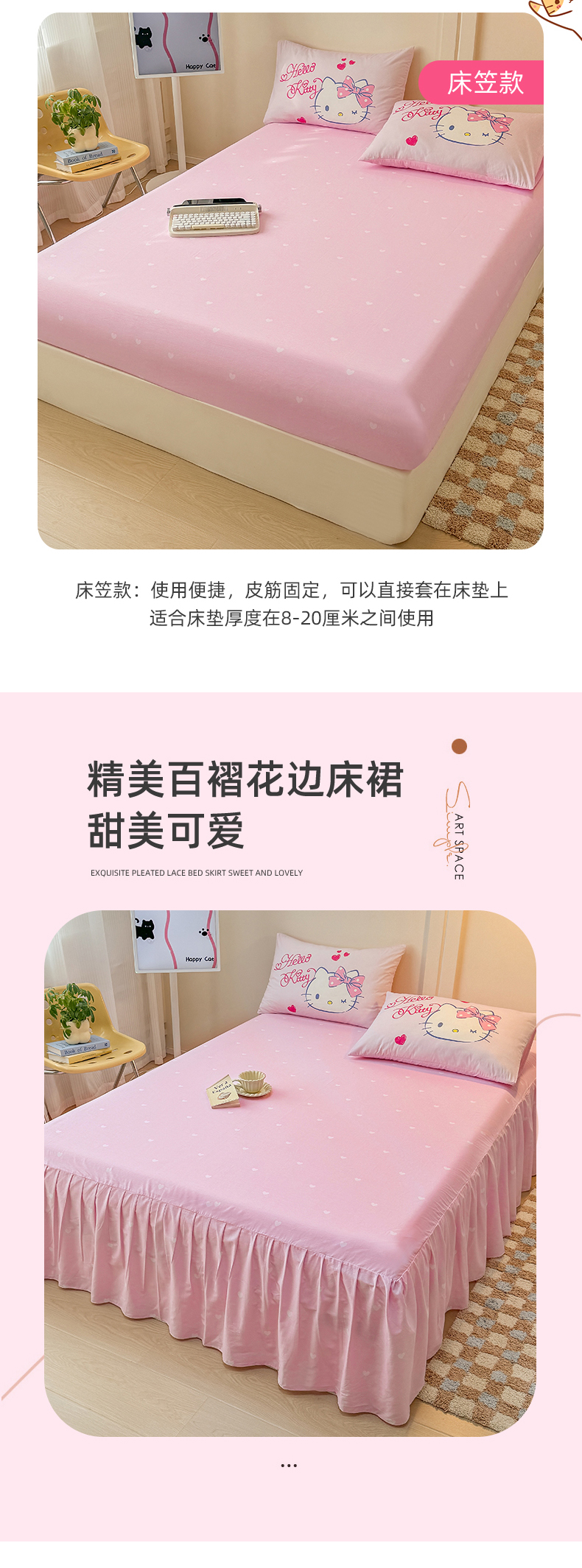 当前位置: 91家纺网 > 商品网购 > 床品套件 > 四件套 > 全棉普通四件套 > 玉元坊 2025新款大版三丽鸥系列全棉纯棉床单纯棉床裙三四件套简约款 甜心凯蒂