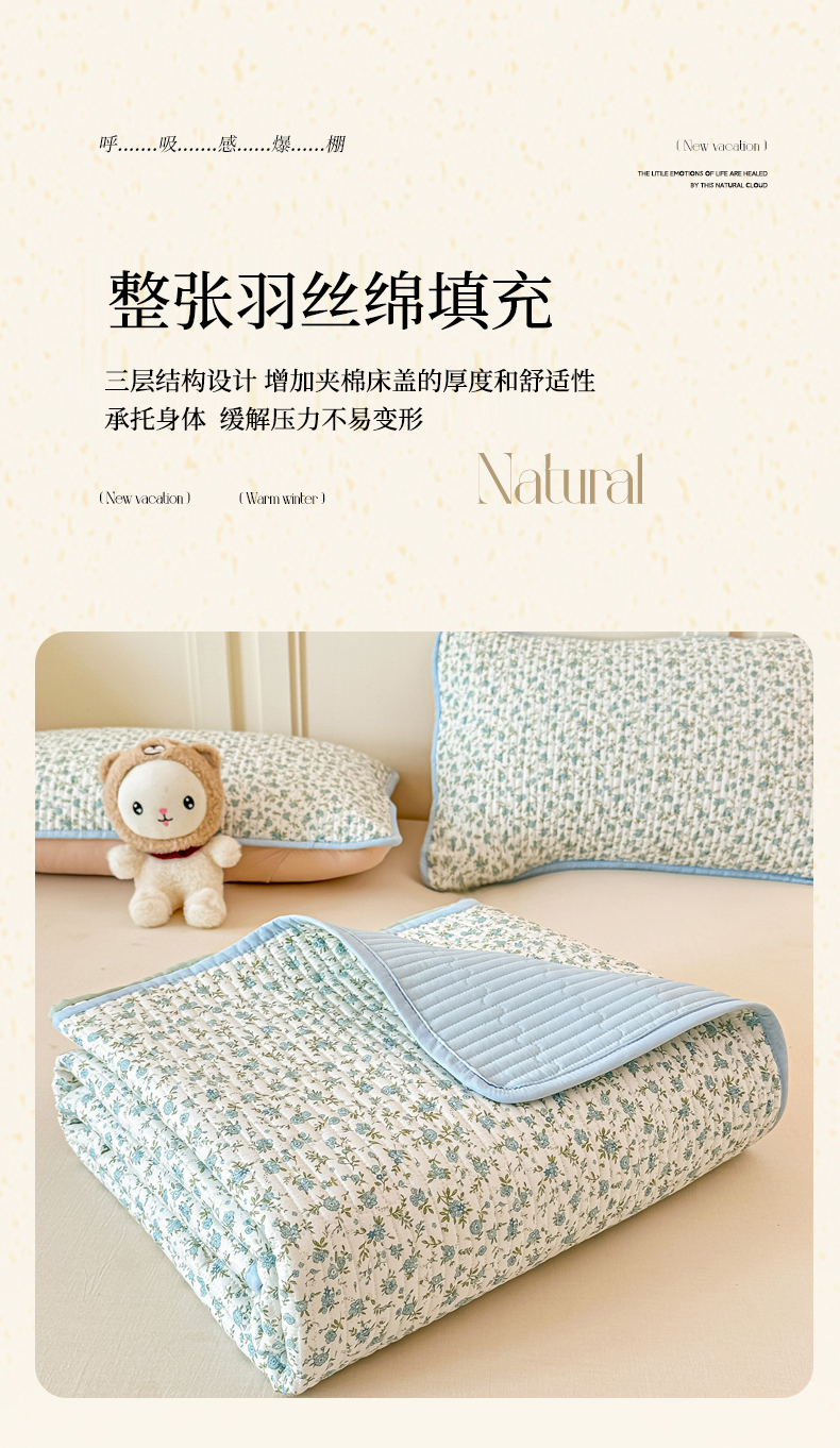 • 91家纺网 家纺一手货源 找家纺 恒尚居 2025新款A类全棉印花夹棉床盖四季款-系列二 【蓝韵】全棉-四季款