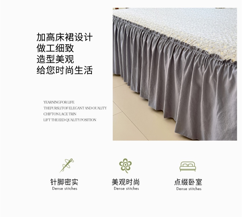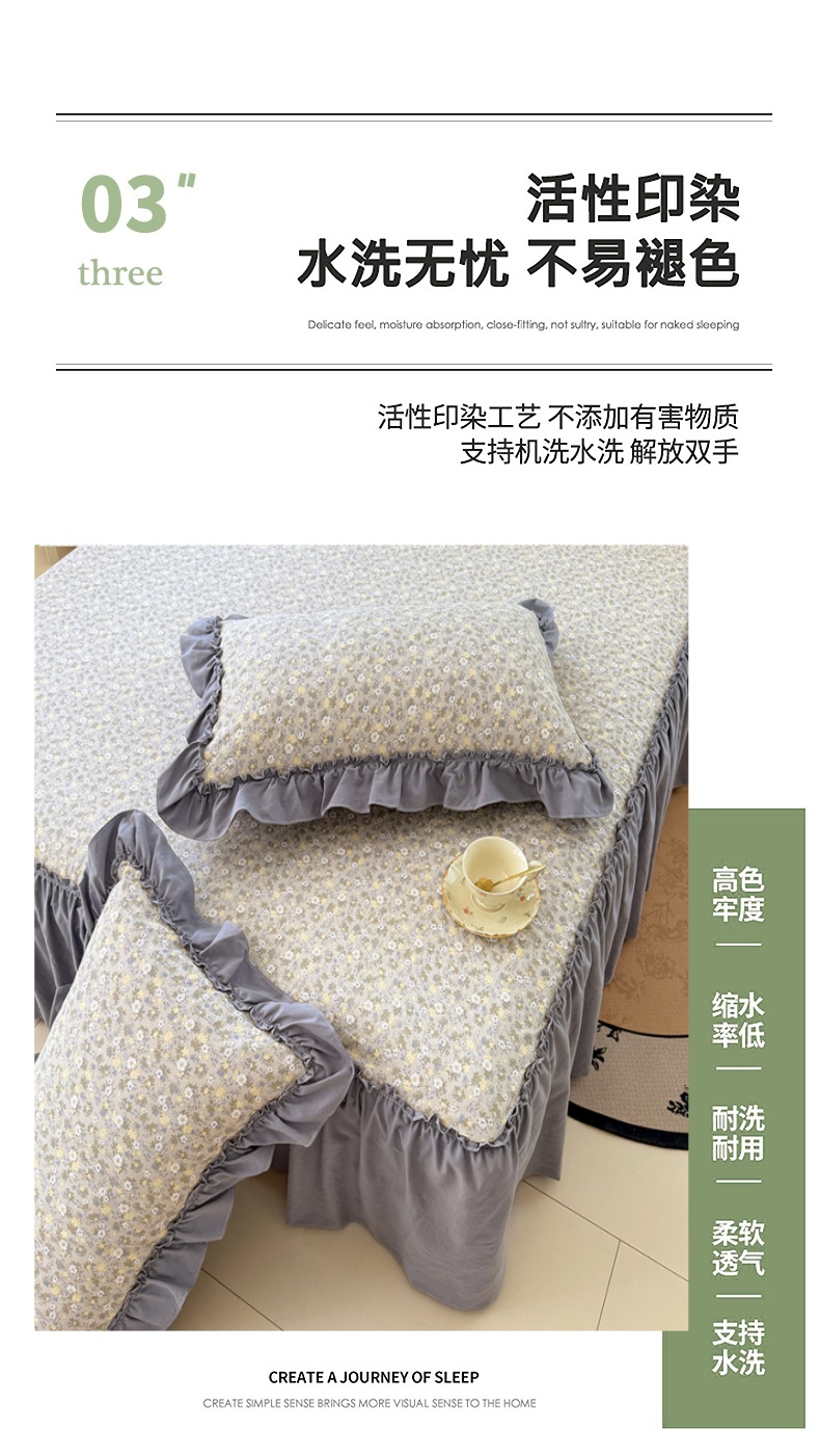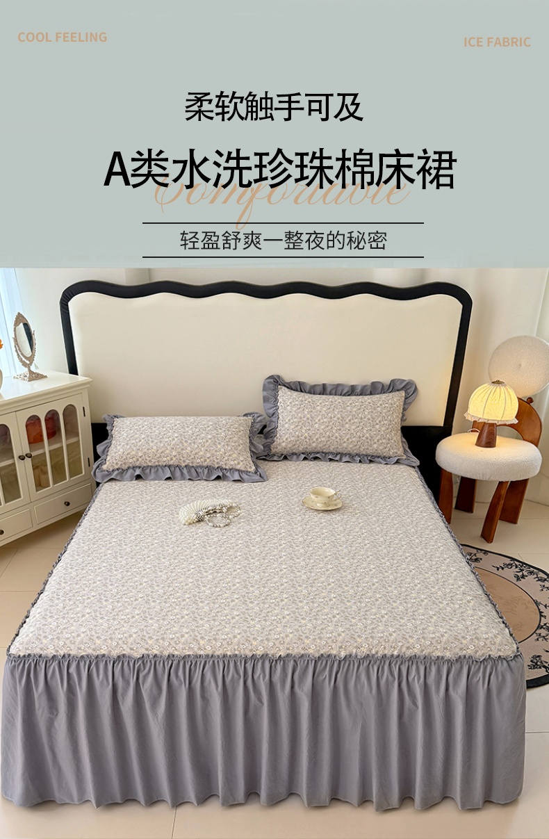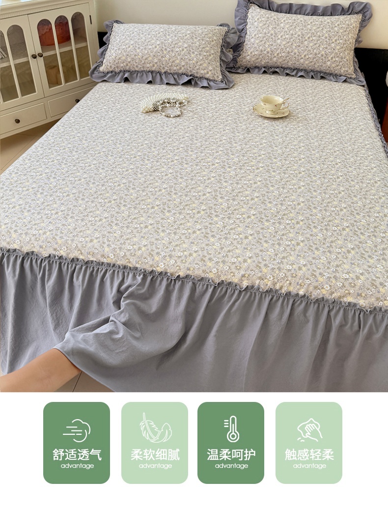 商品名称:梦舒羽 2025新款水洗珍珠棉单件床裙双层纱床垫保护罩三件套 花知晓