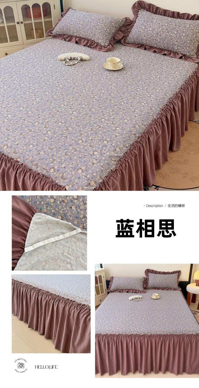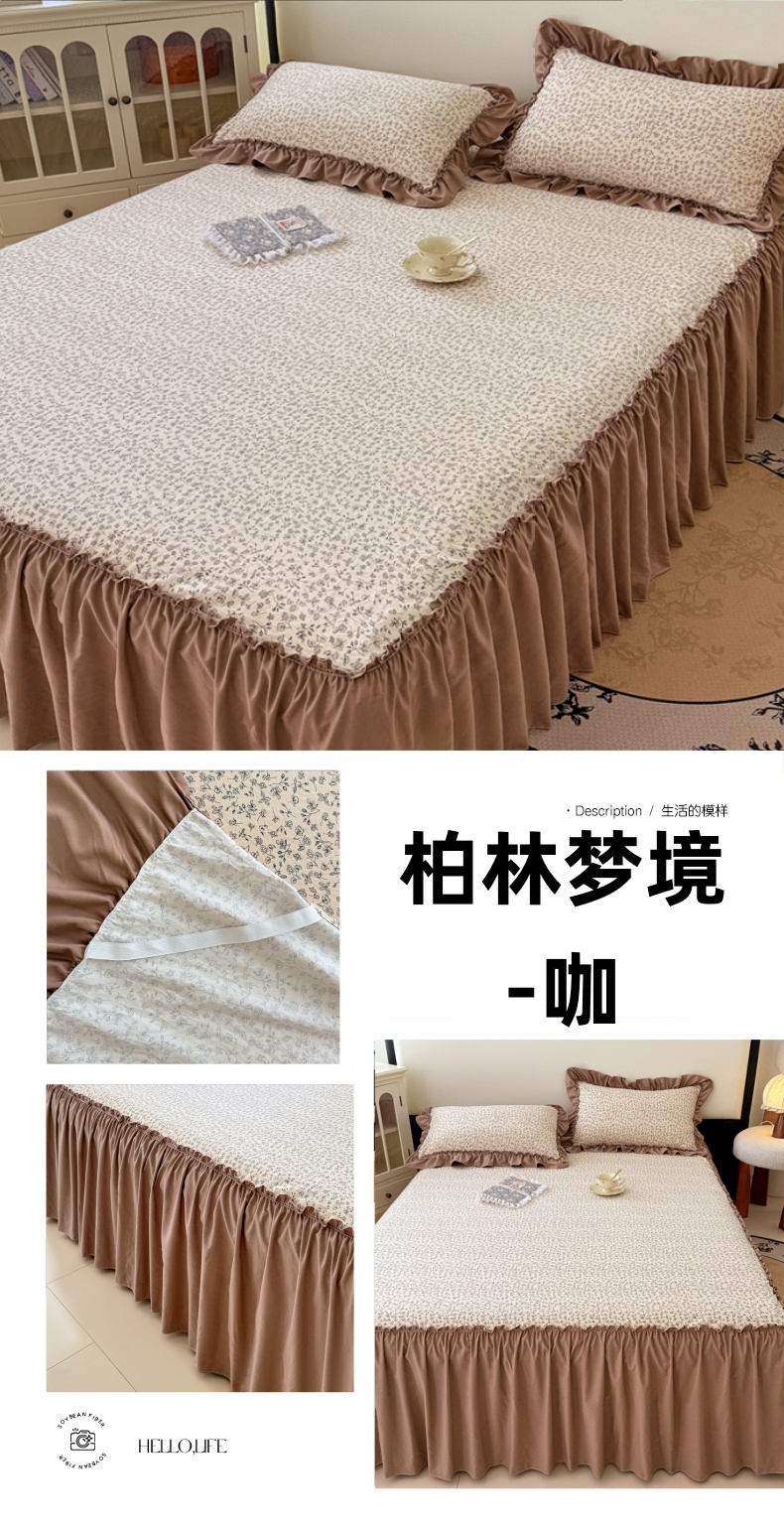 (总)梦舒羽 2025新款水洗珍珠棉单件床裙双层纱床垫保护罩三件套,玫瑰之约,柏林梦境-咖,花未眠-紫,花知晓,蓝相思,墨染芳华,宁静花园,怦然心动,浅影摇曳-紫,樱桃季,云裳花谷,紫倾心,组合图仅供展示