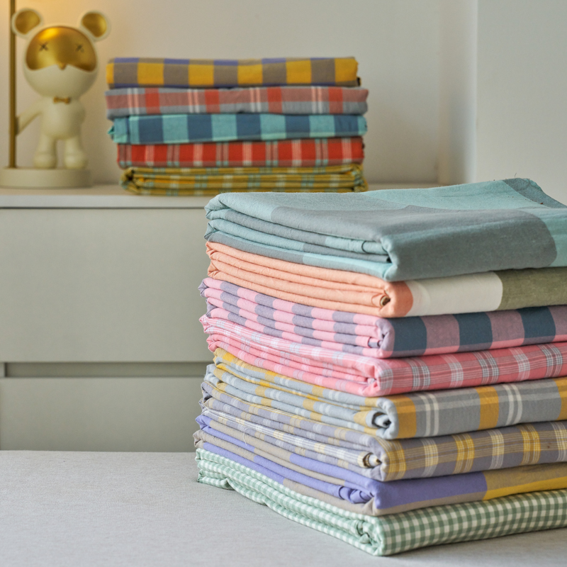 商品名称:贝尔 PELLHOME 全棉色织水洗棉格子单床单(可抖音代发) 梦幻-黄