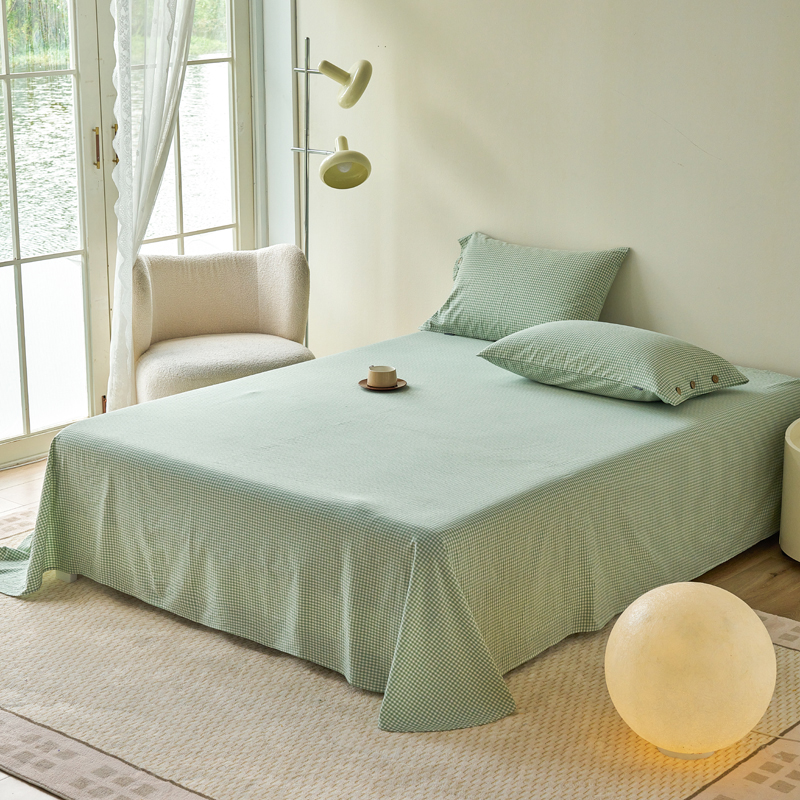 贝尔 PELLHOME 全棉色织水洗棉格子单床单(可抖音代发) 梦幻-黄