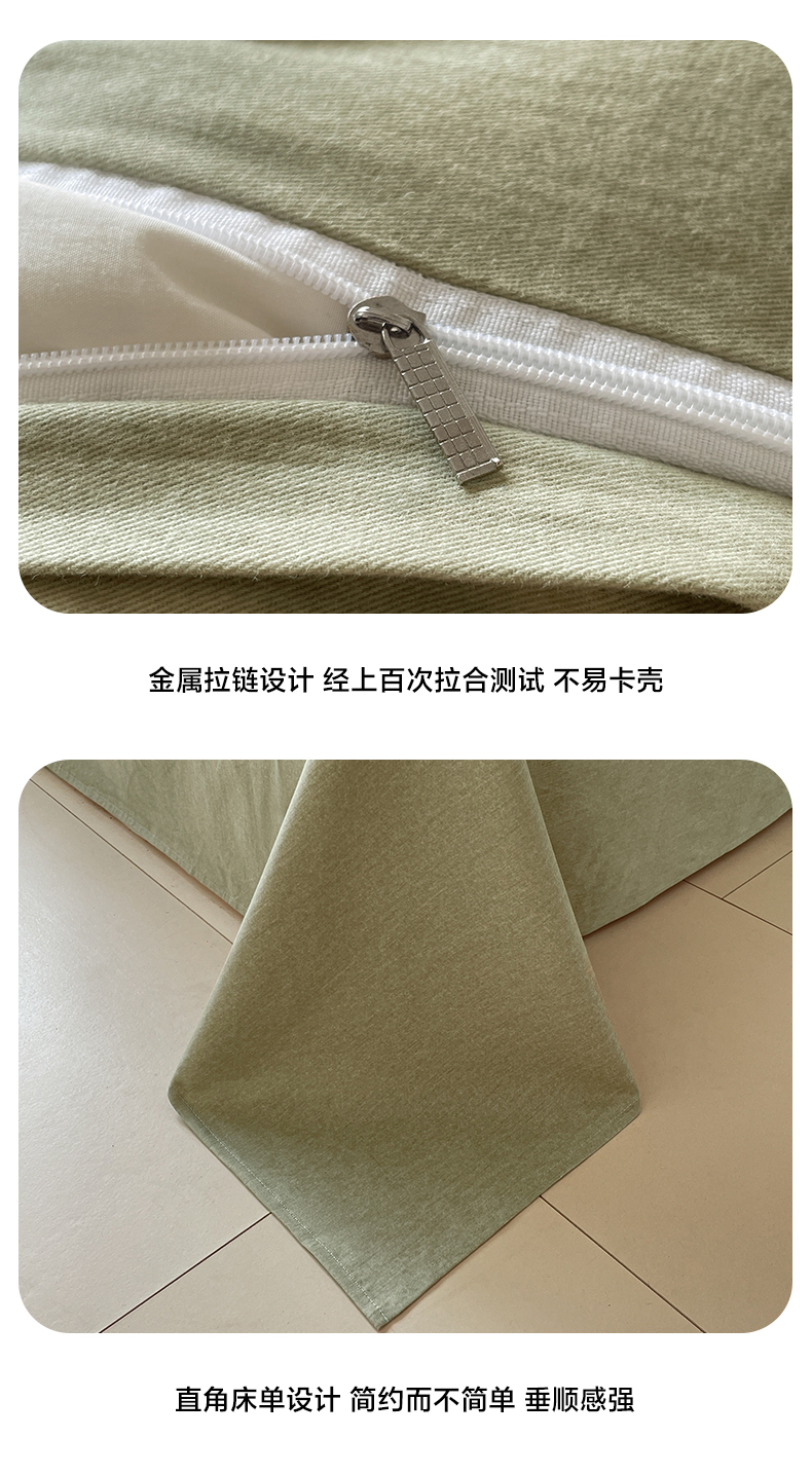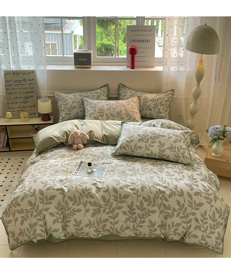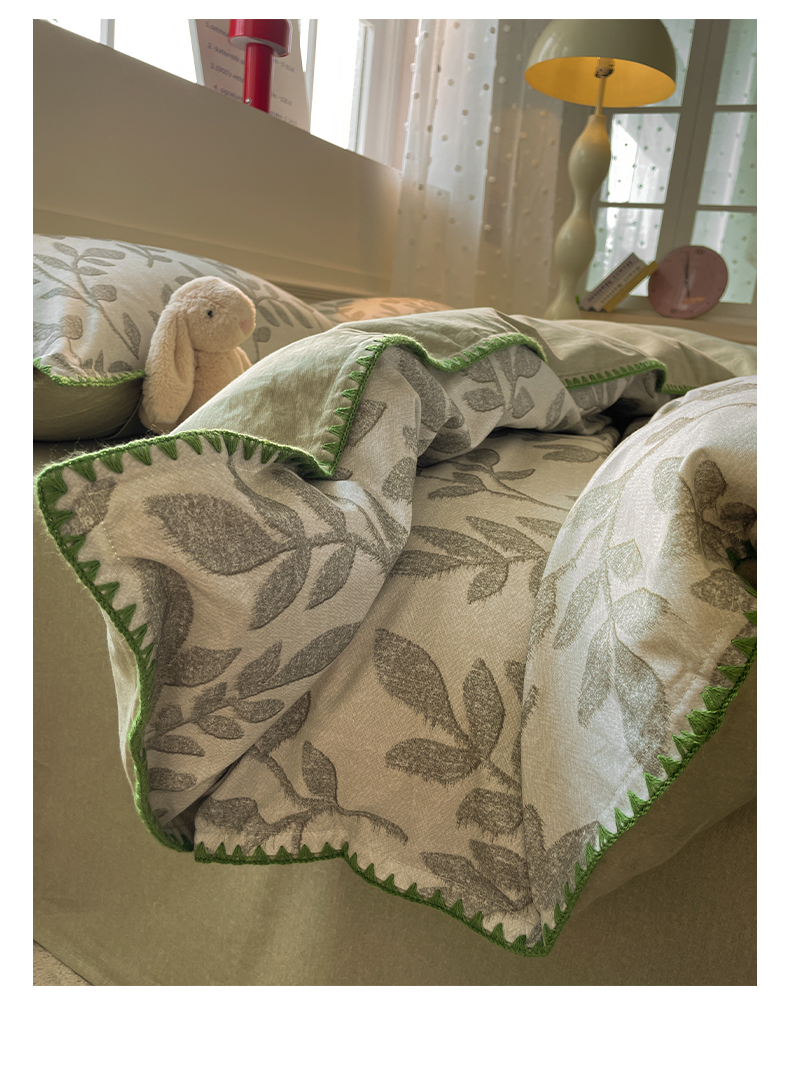 如一 2025新款加厚全棉磨毛三角针四件套 叶语-绿