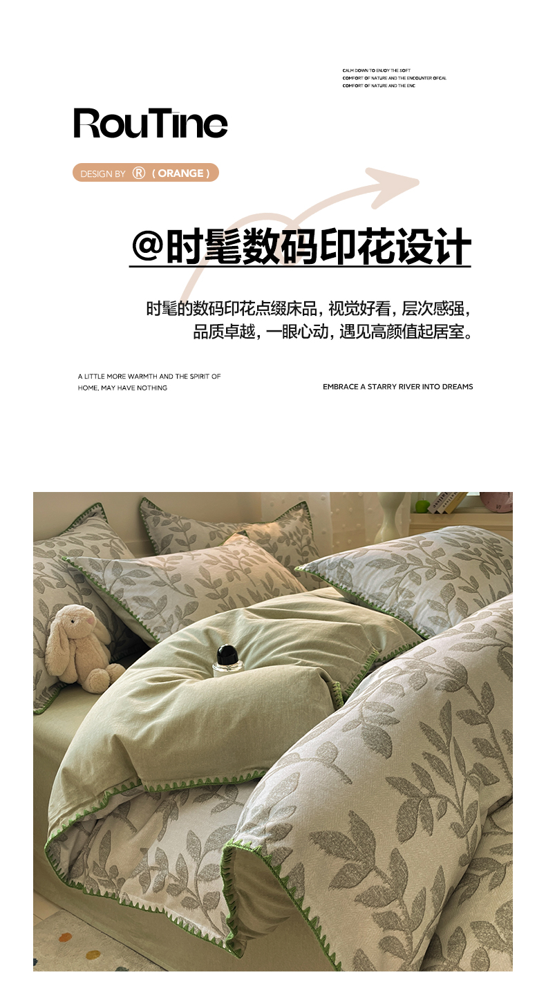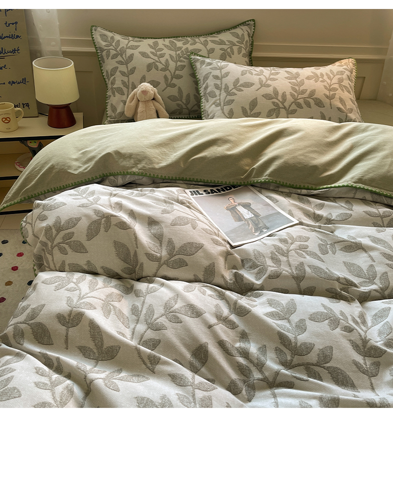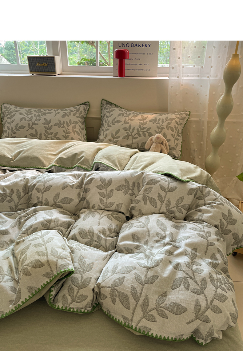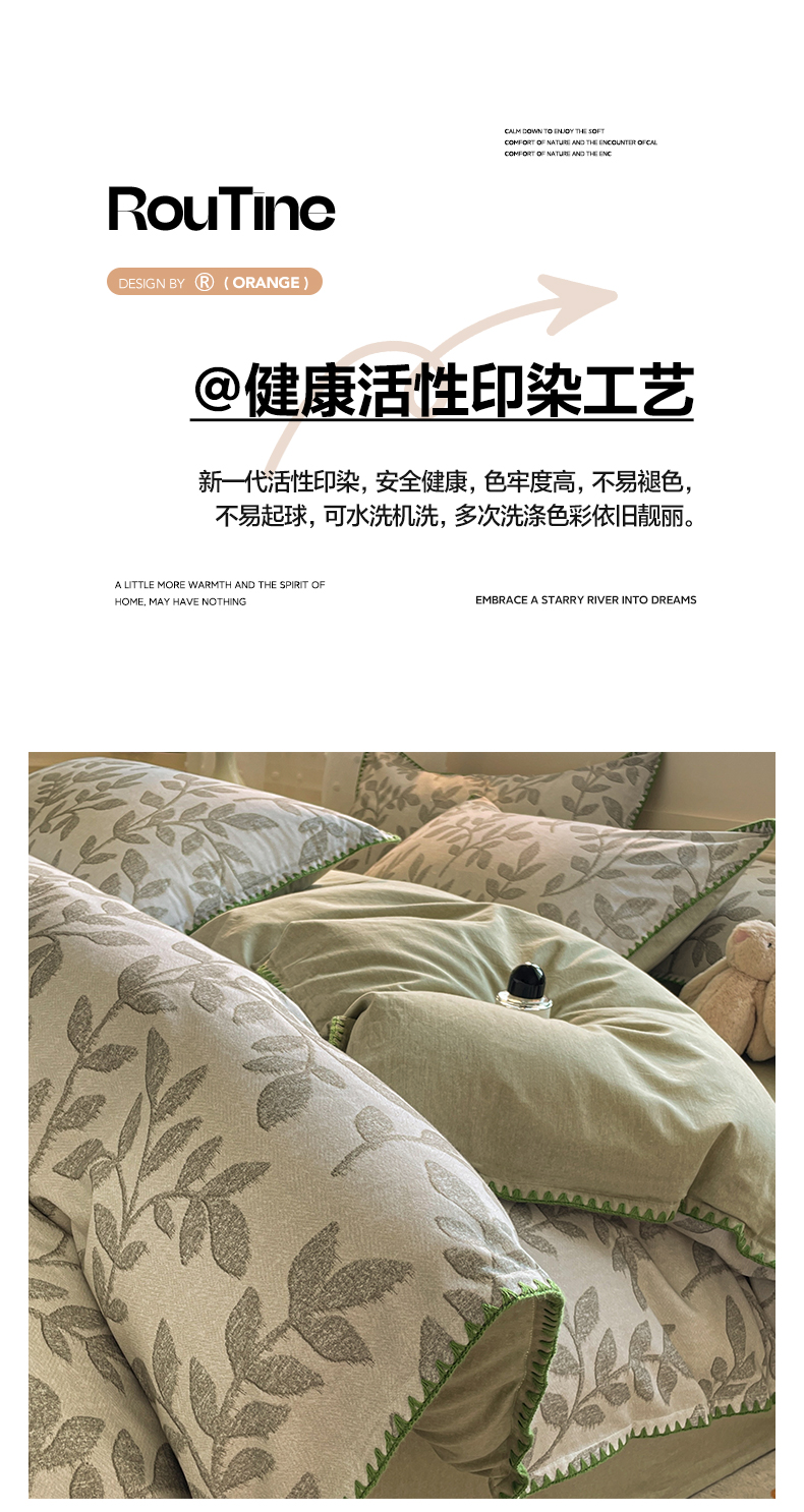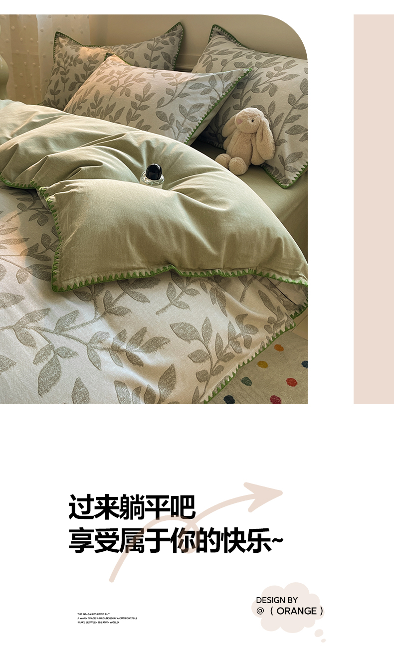 商品名称:如一 2025新款加厚全棉磨毛三角针四件套 叶语-绿