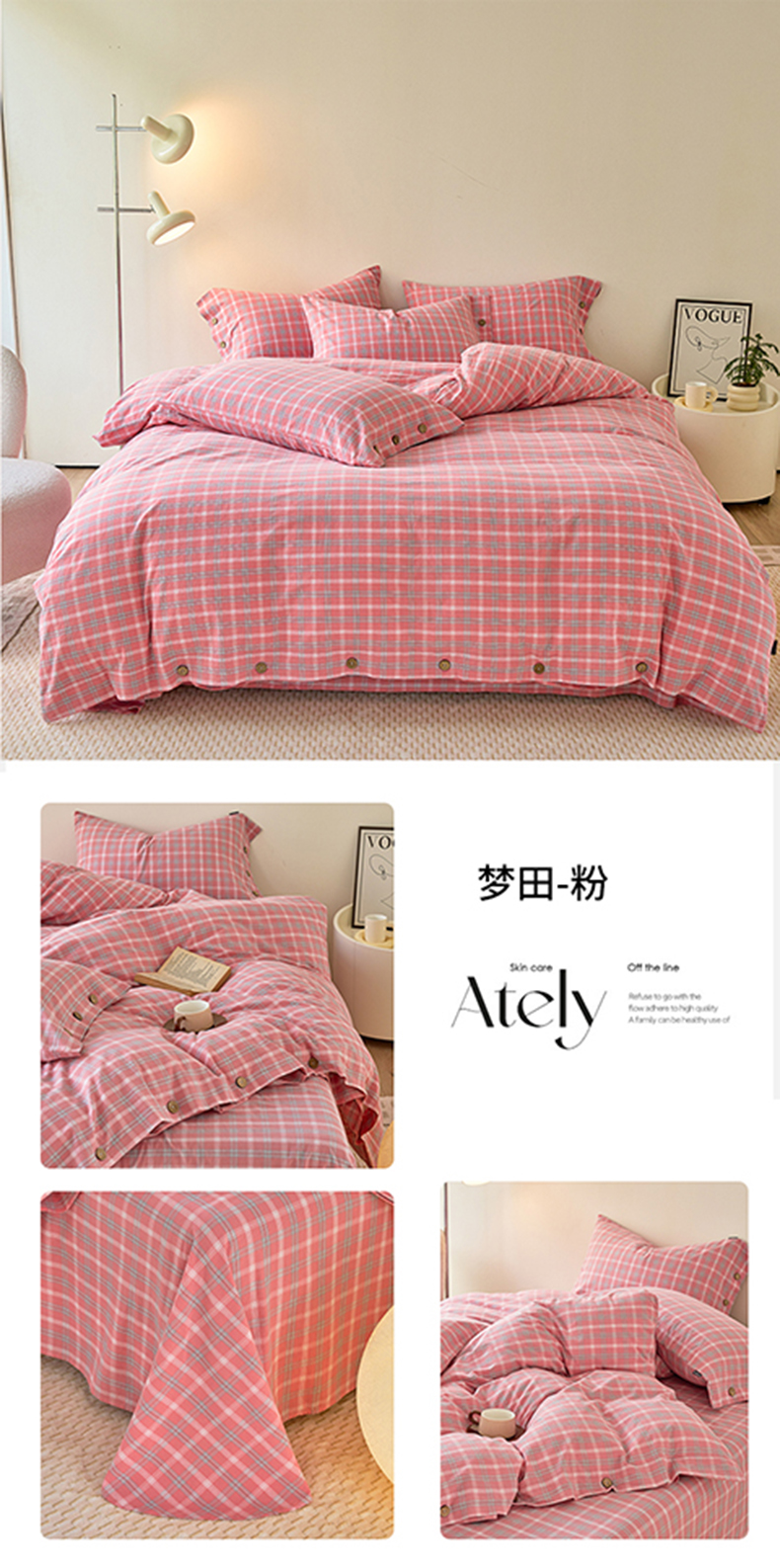 当前位置: 91家纺网 > 商品网购 > 床品套件 > 四件套 > 水洗棉四件套 > 贝尔 PELLHOME 全棉纽扣色织水洗棉格子四件套(可抖音代发) 梦田-灰