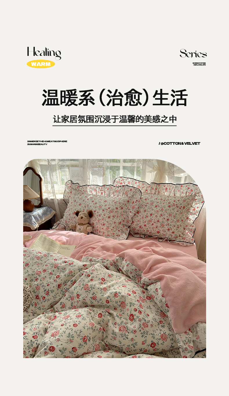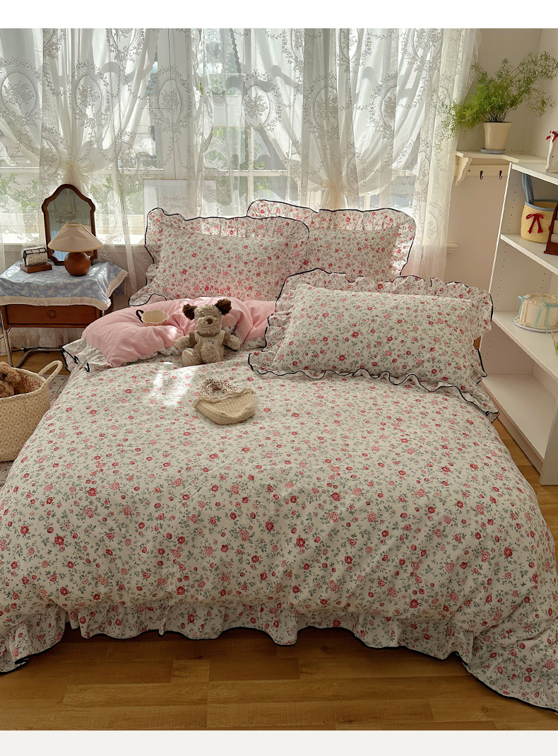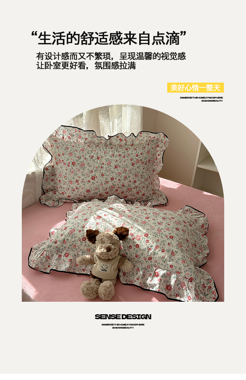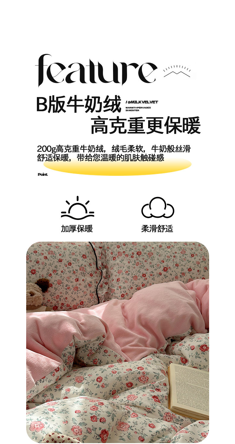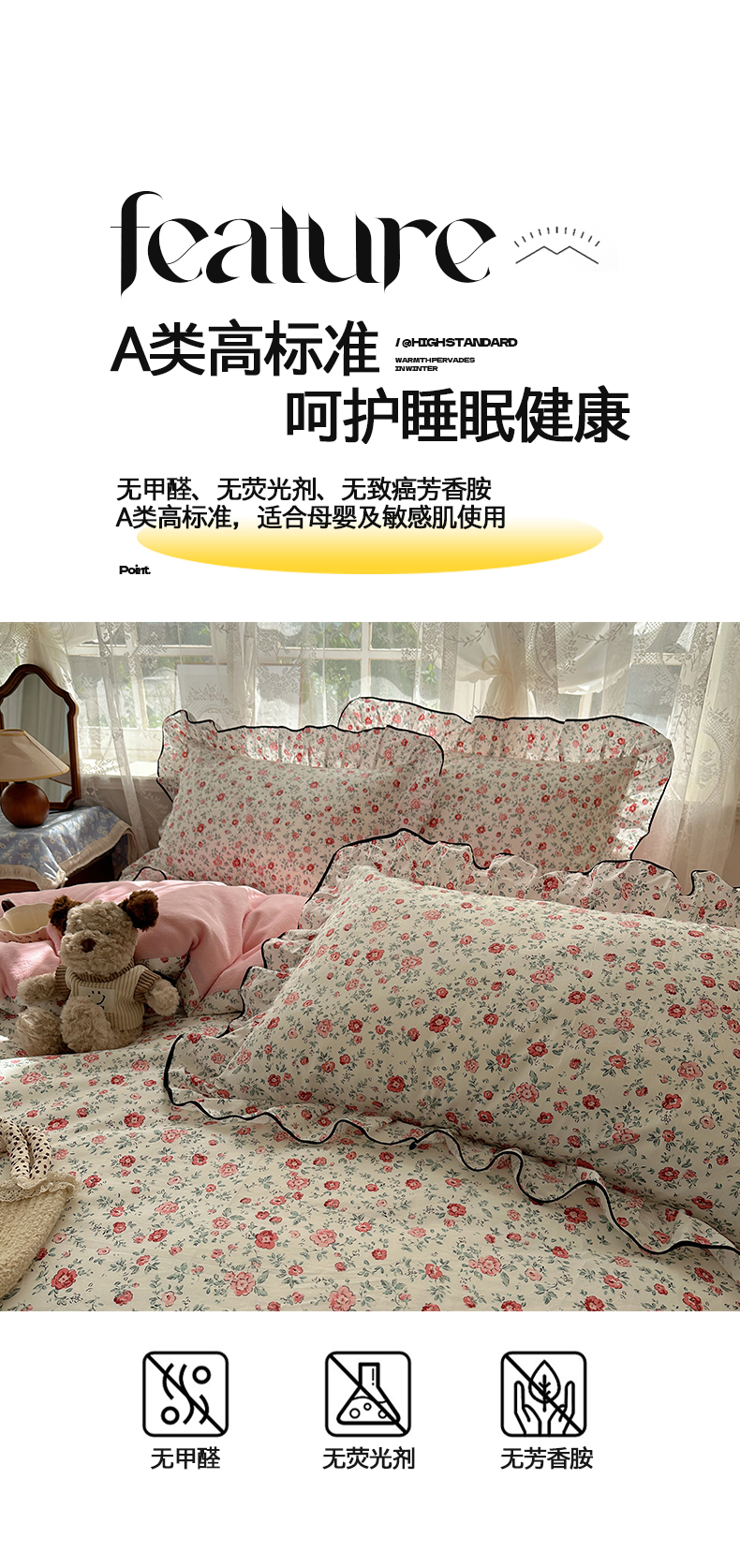 商品名称:桃子家居 2025新款A类纯棉数码印花法式碎花棉加绒韩版花边碎花加厚牛奶绒四件套 棉加绒-花边茉拉