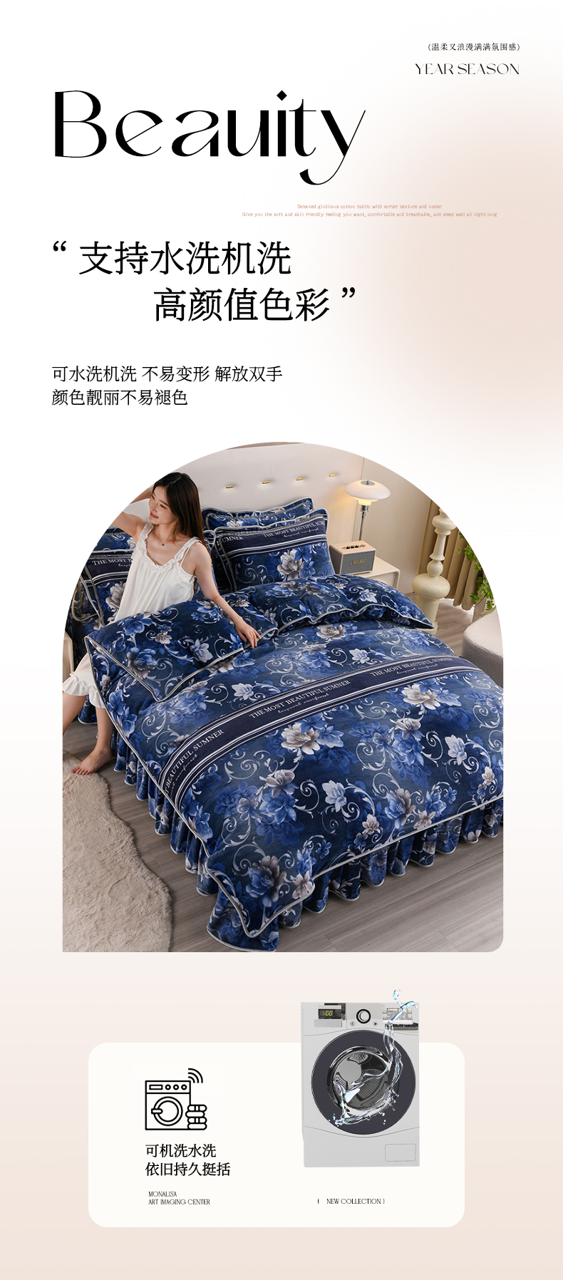 (总)晚静 2025新款7斤牛奶绒四件套金貂法莱绒床裙款保暖绒三件套 ,蝶恋花,花开富贵,花香,蓝莲花,小鹿,枫叶情(有三件套),恋曲,心之恋,银杏叶粉,吉祥鹿,简约格调,清新花朵,可爱熊猫,向阳花开,幸运树,钻石爱心,大蓝格(有三件套),郁金香(有三件套),爱恋粉,花晨月夕,银杏叶,可爱拉布