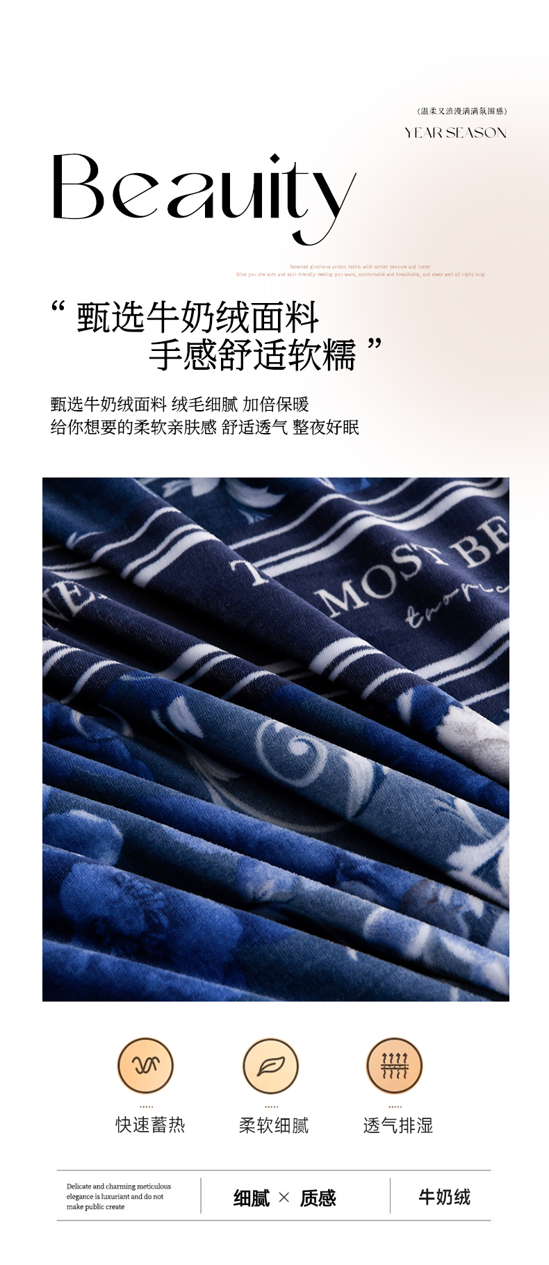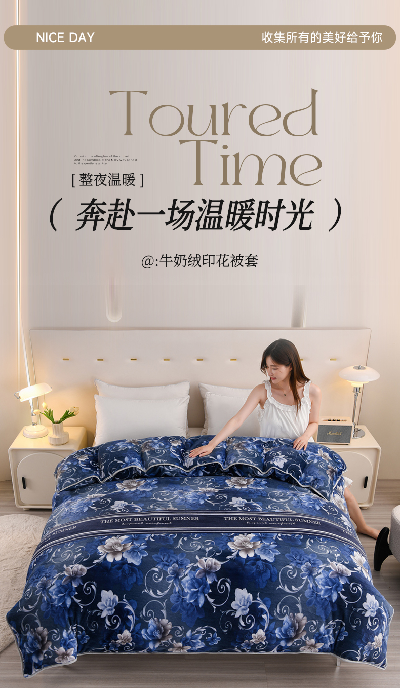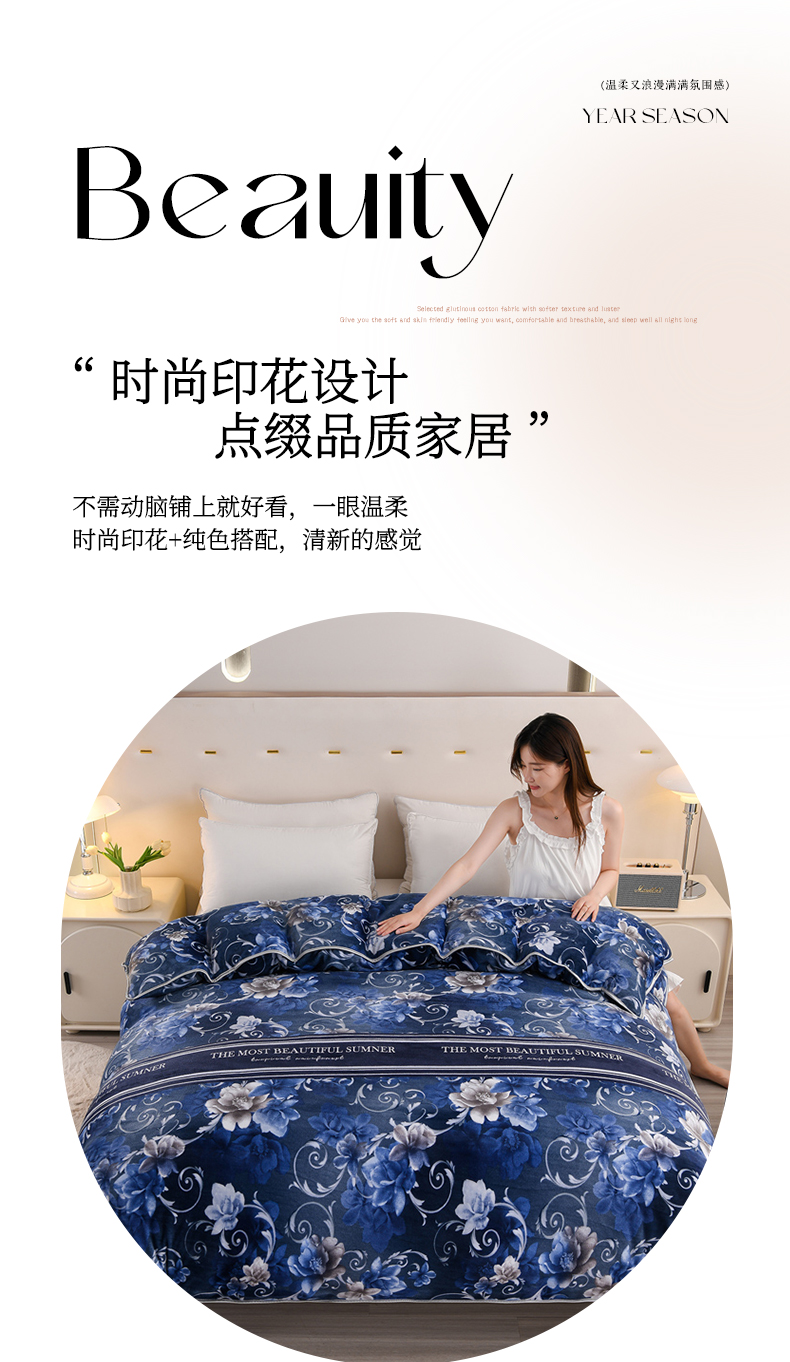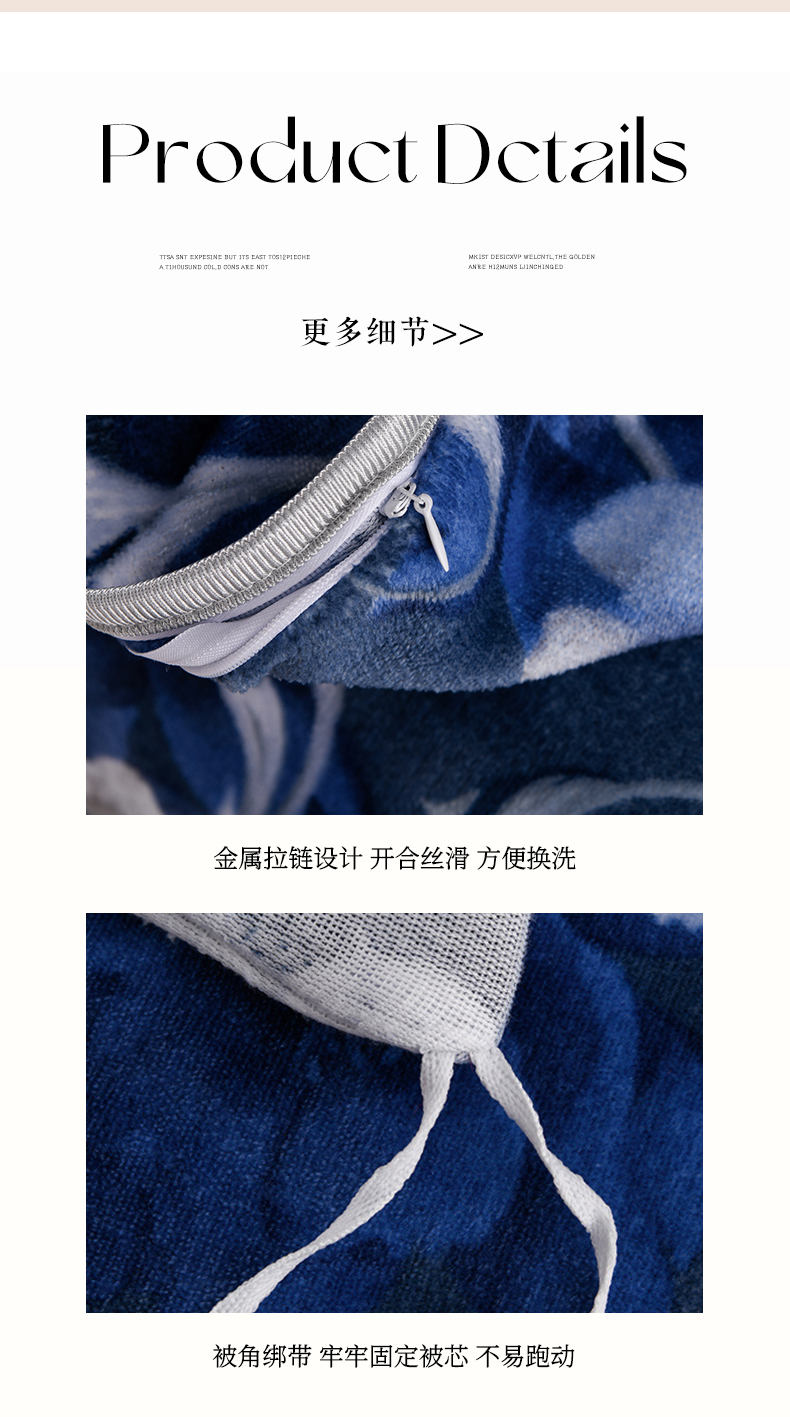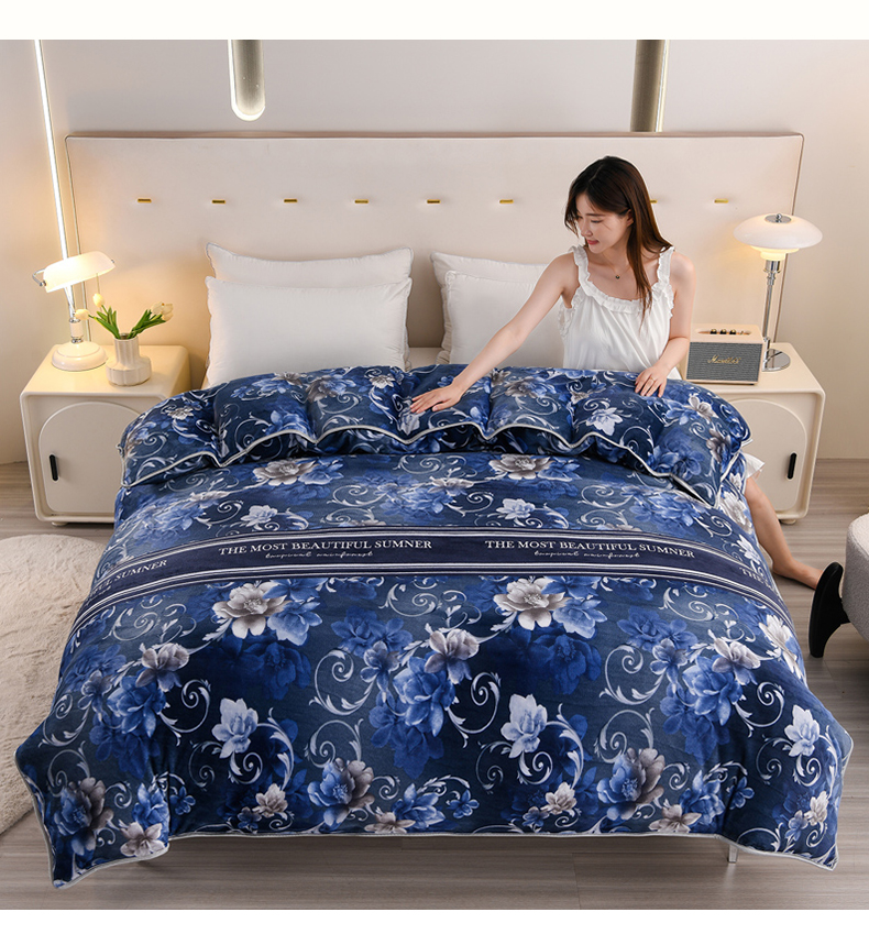 商品名称:晚静 2025新牛奶绒印花单被套法莱绒金貂被套单件180克全尺寸被套 蓝莲花