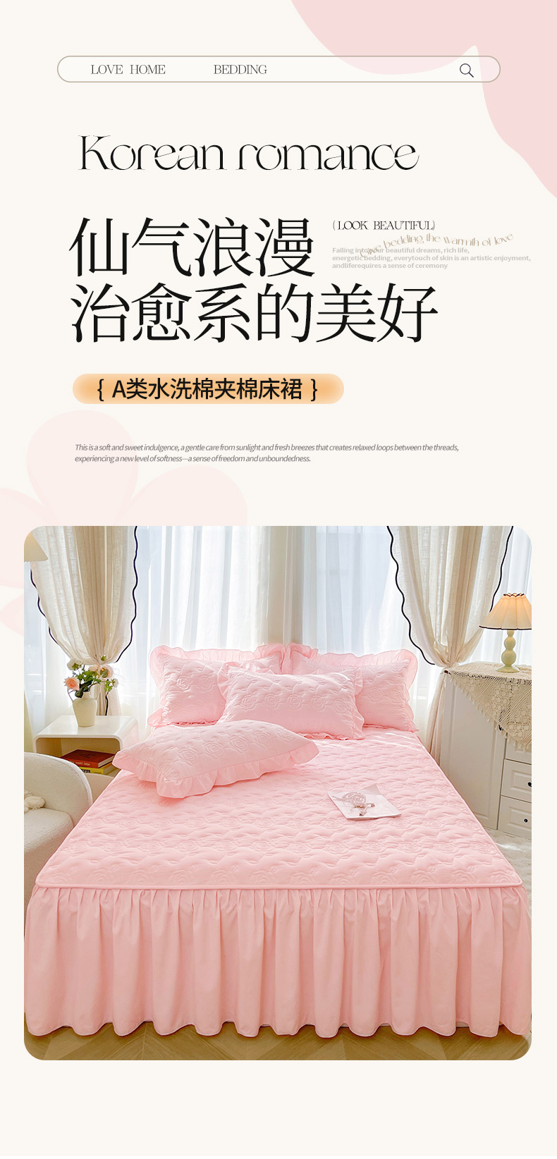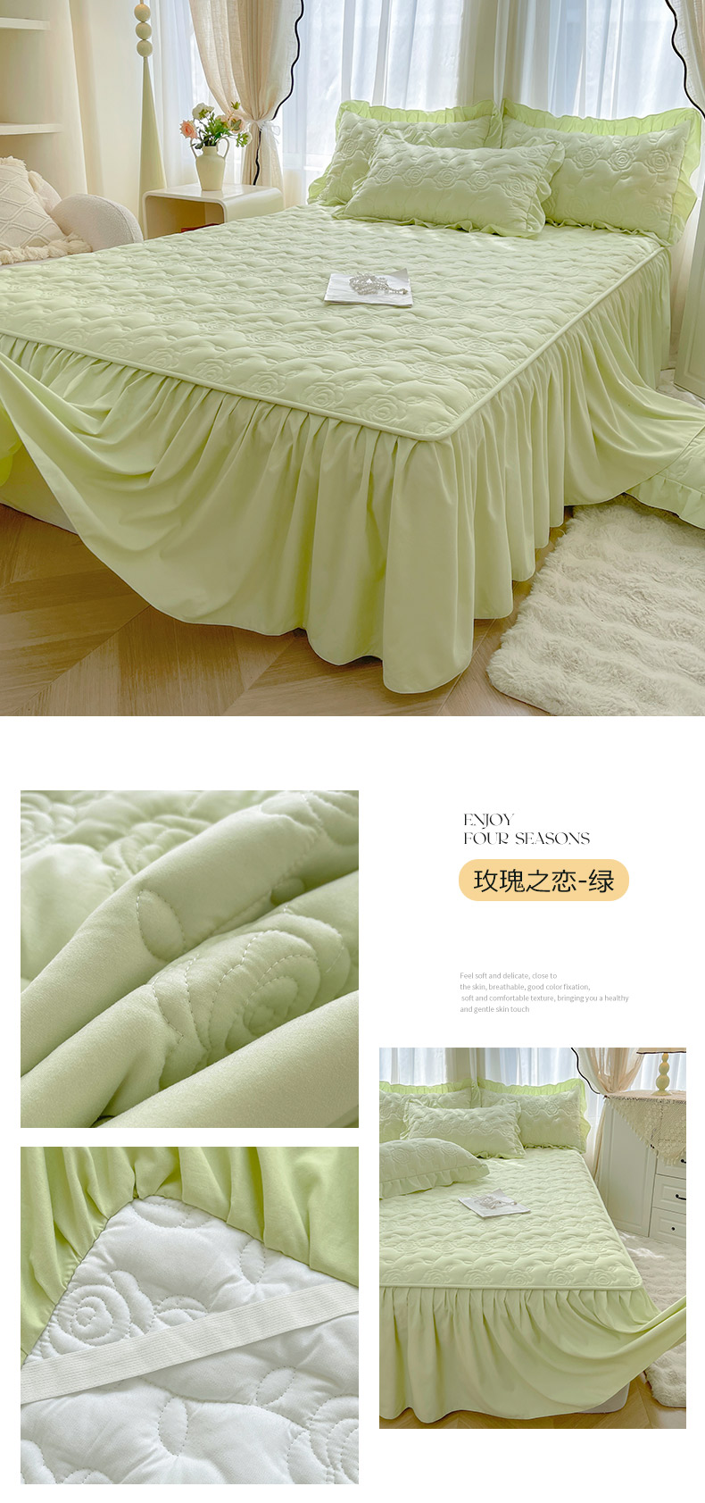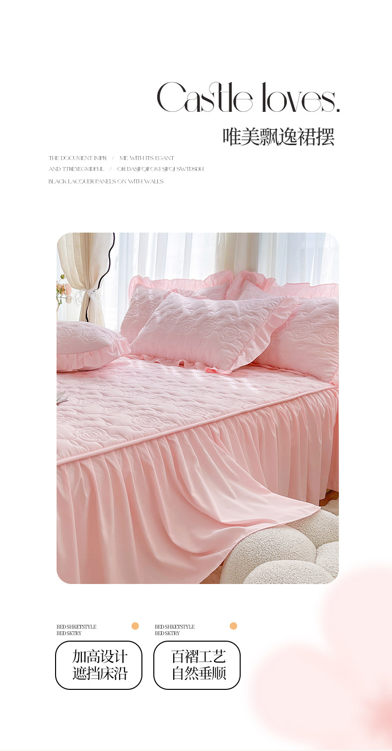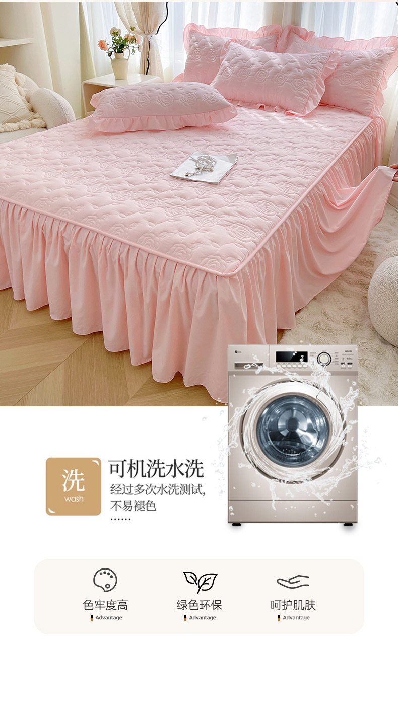 商品名称:(总)鼎丰家纺 2025新款纯色夹棉床裙-玫瑰之恋