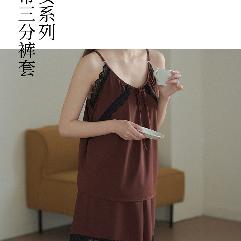 (总)妍景家居生活馆 2025新款纯色蕾丝吊带套装