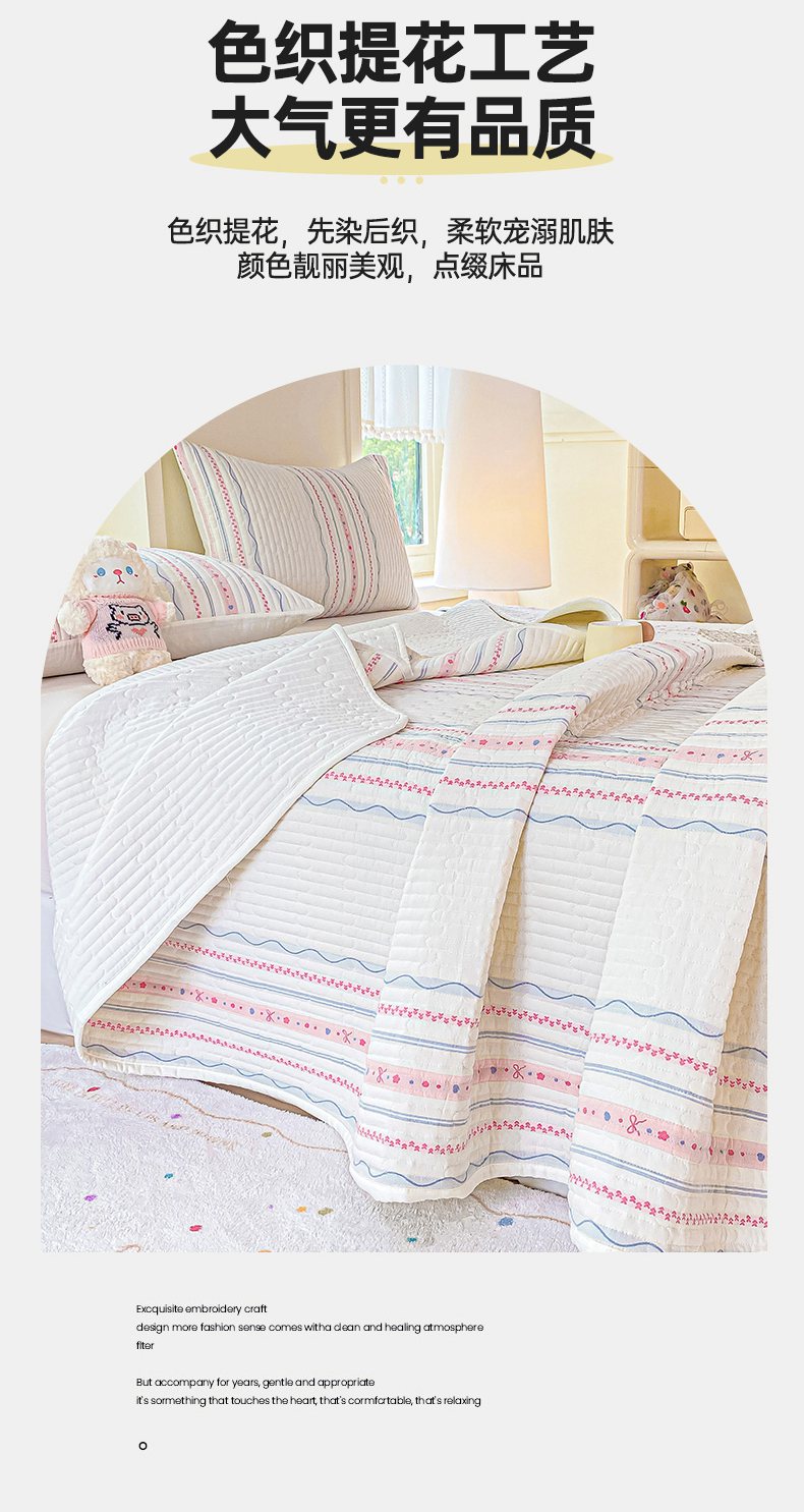 灰鲸 2025新款全棉色织提花床盖系列 简爱-粉