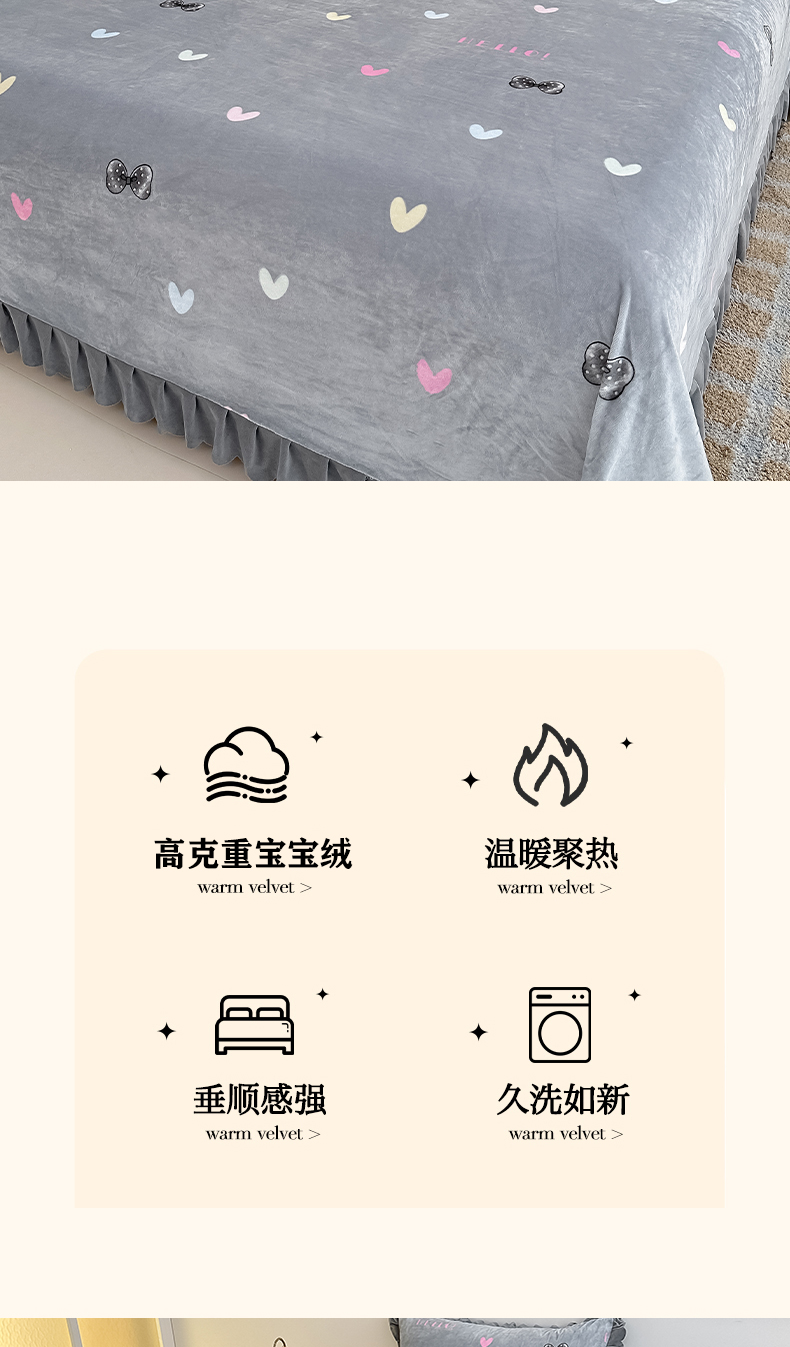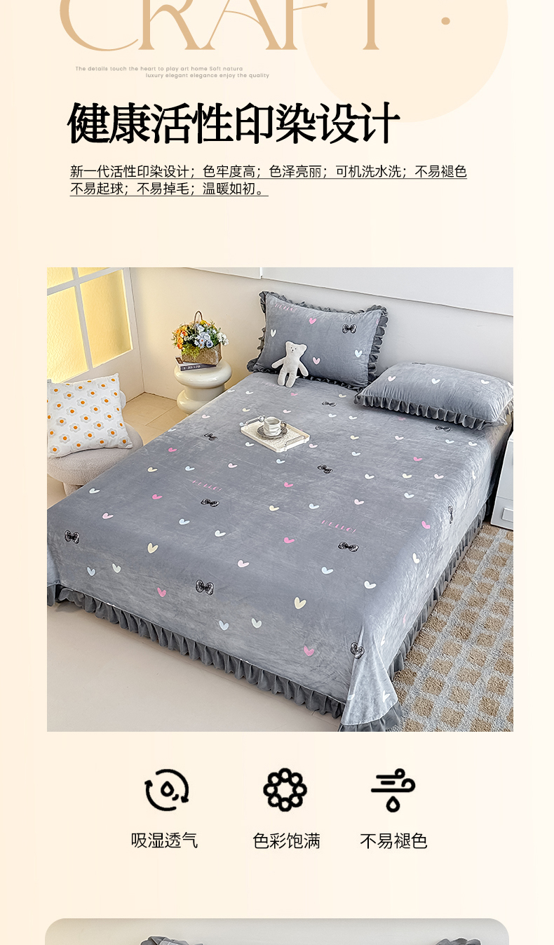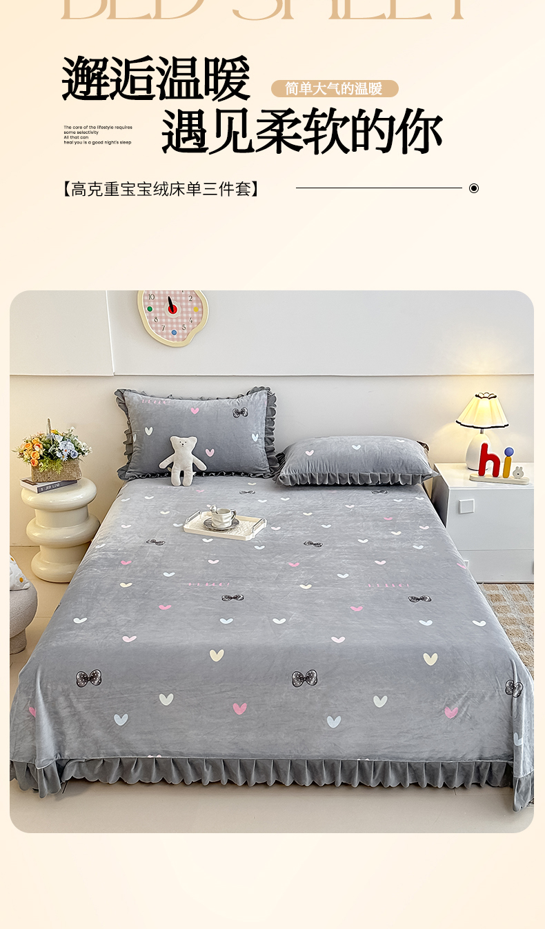 商品名称:手艺人家纺 2025新款宝宝绒单层床盖三件套 NDC30