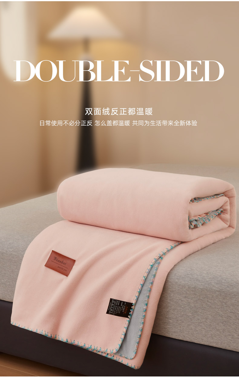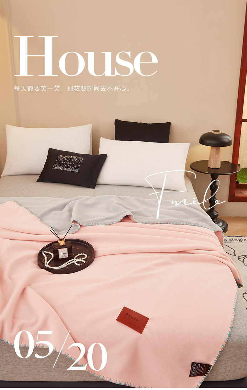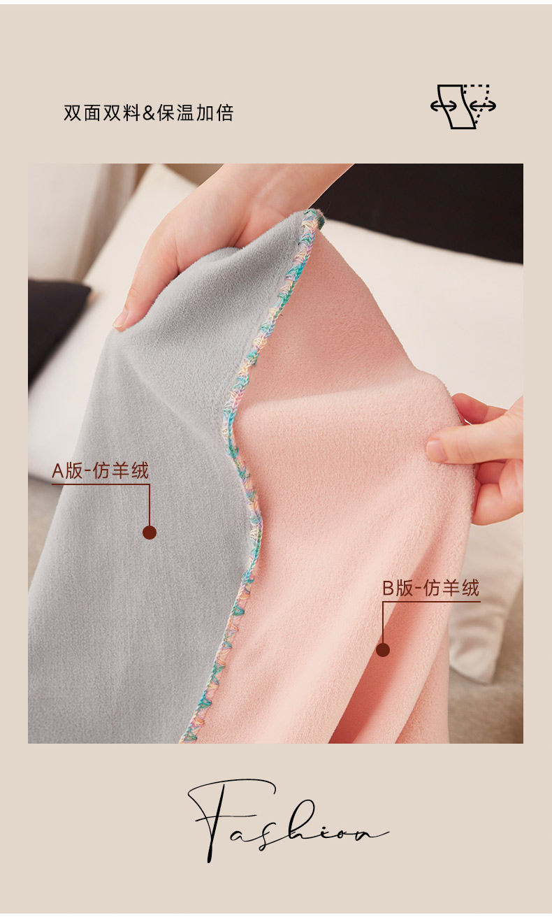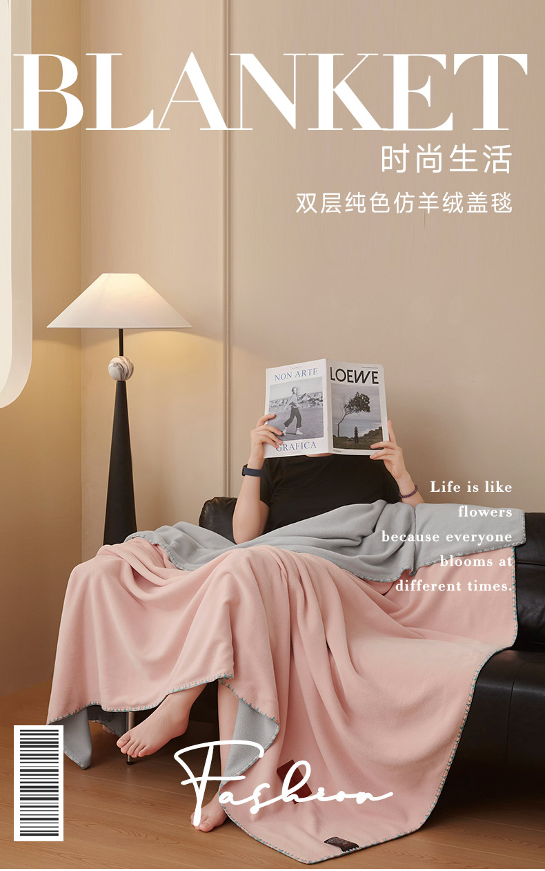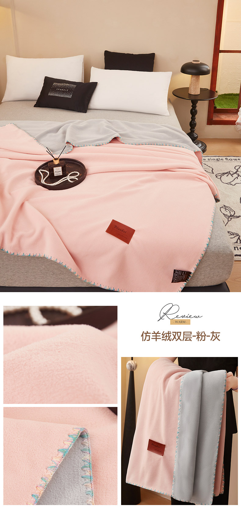 商品名称:肖恩毯业 2025新款轻奢纯色仿羊绒毯单层双层保暖加厚秋冬毛毯盖毯毯子跨境专供 仿羊绒双层-粉-灰