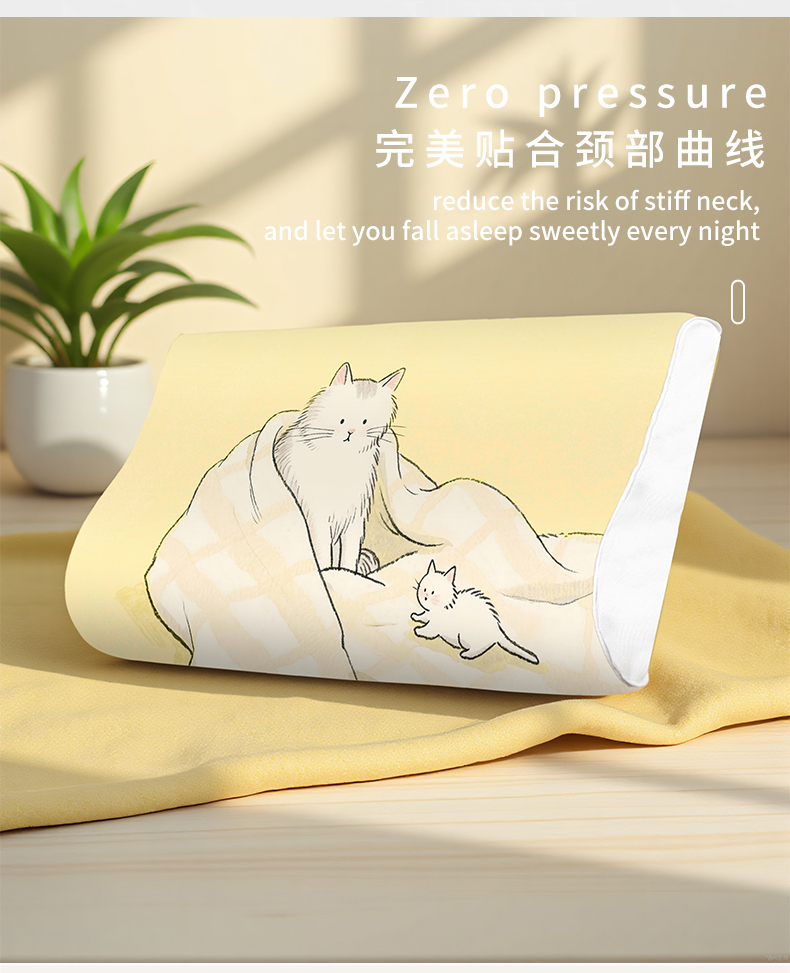 商品名称:小猫派 2025秋冬印花儿童高低枕可水洗亲水棉枕芯(新款9.1号有货) 柠檬小猫-高低枕
