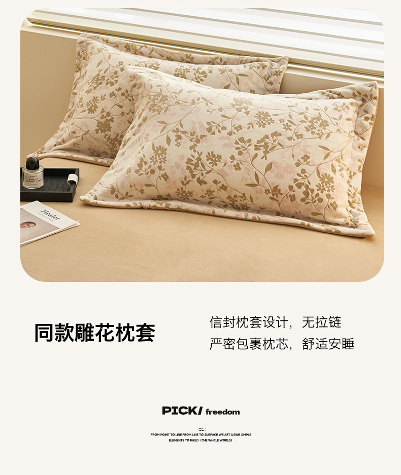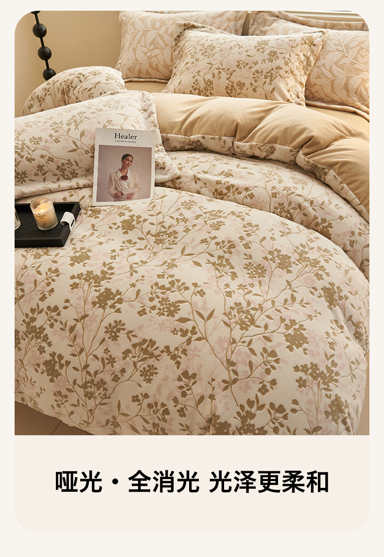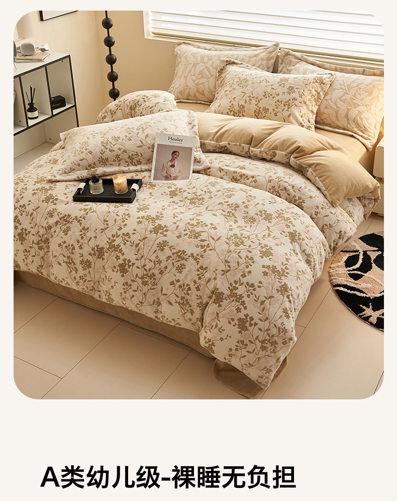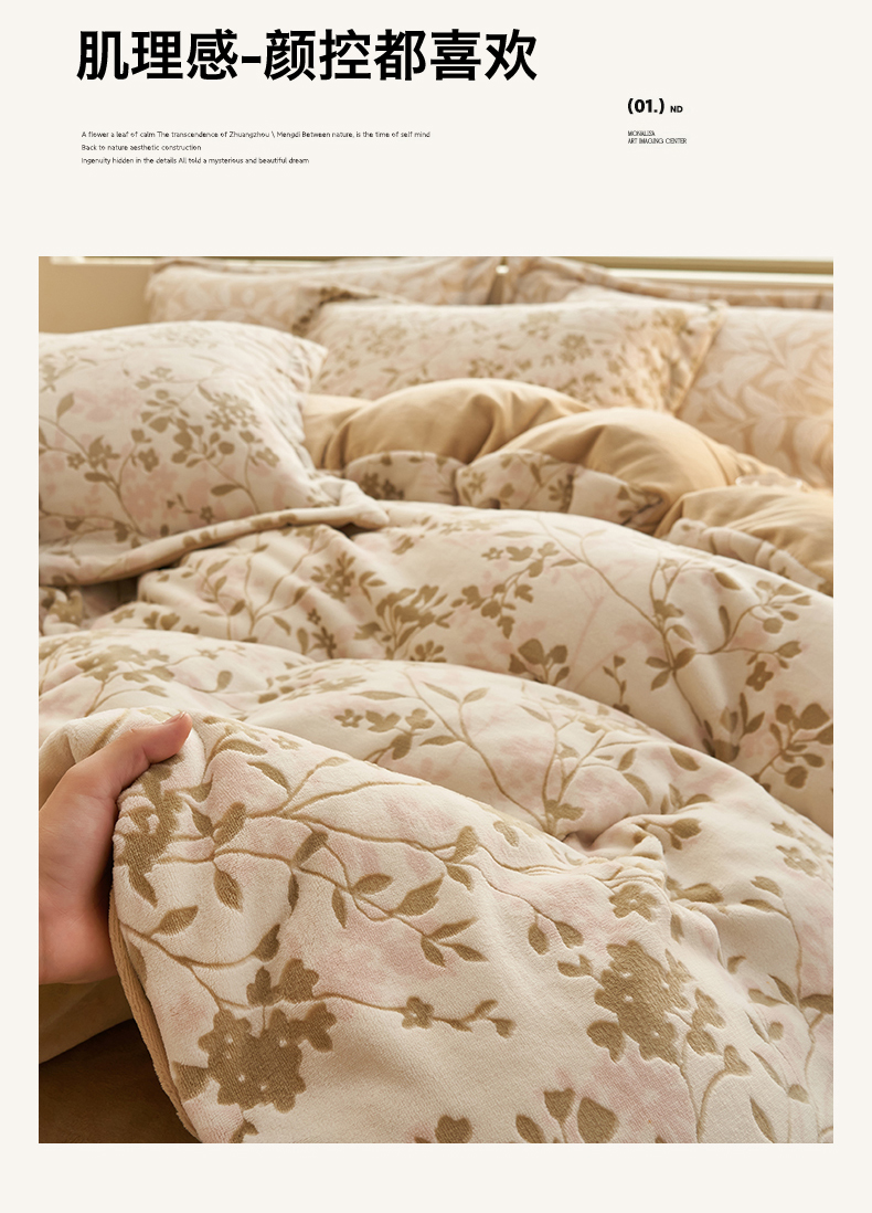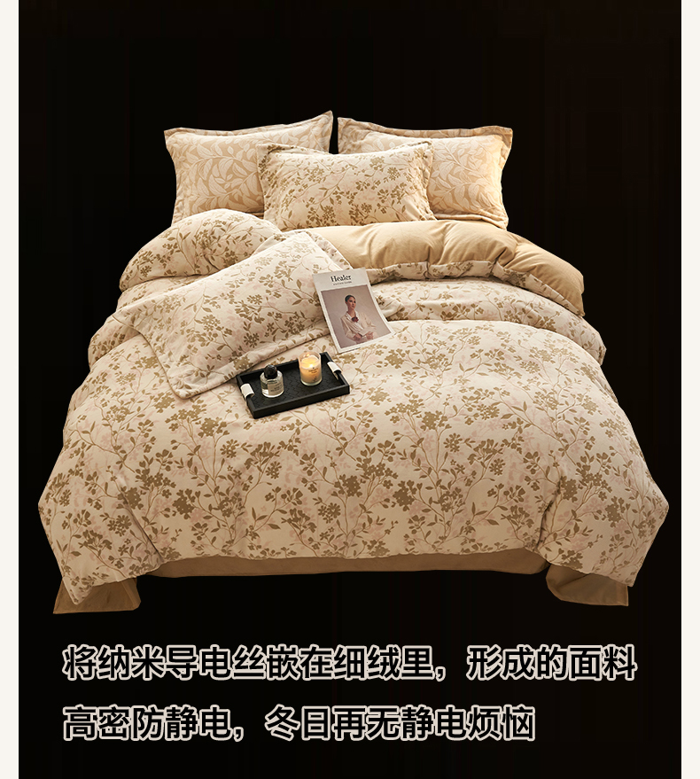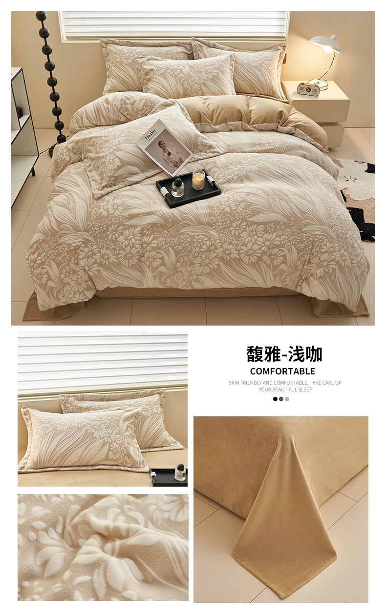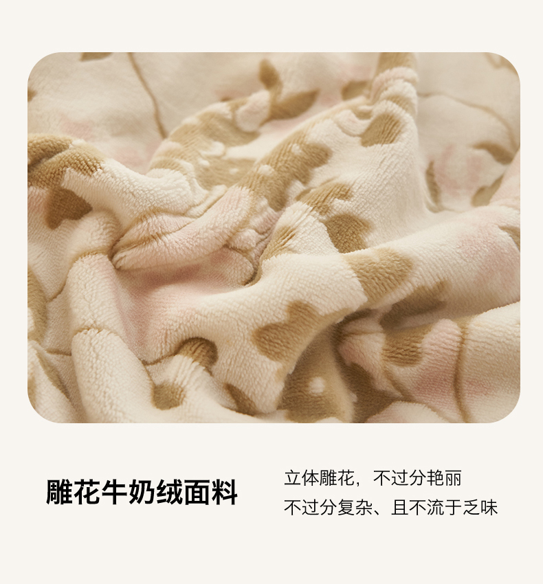 商品名称:恒爱家纺 2025新款牛奶绒立体剪花四件套 漫步时光-浅咖