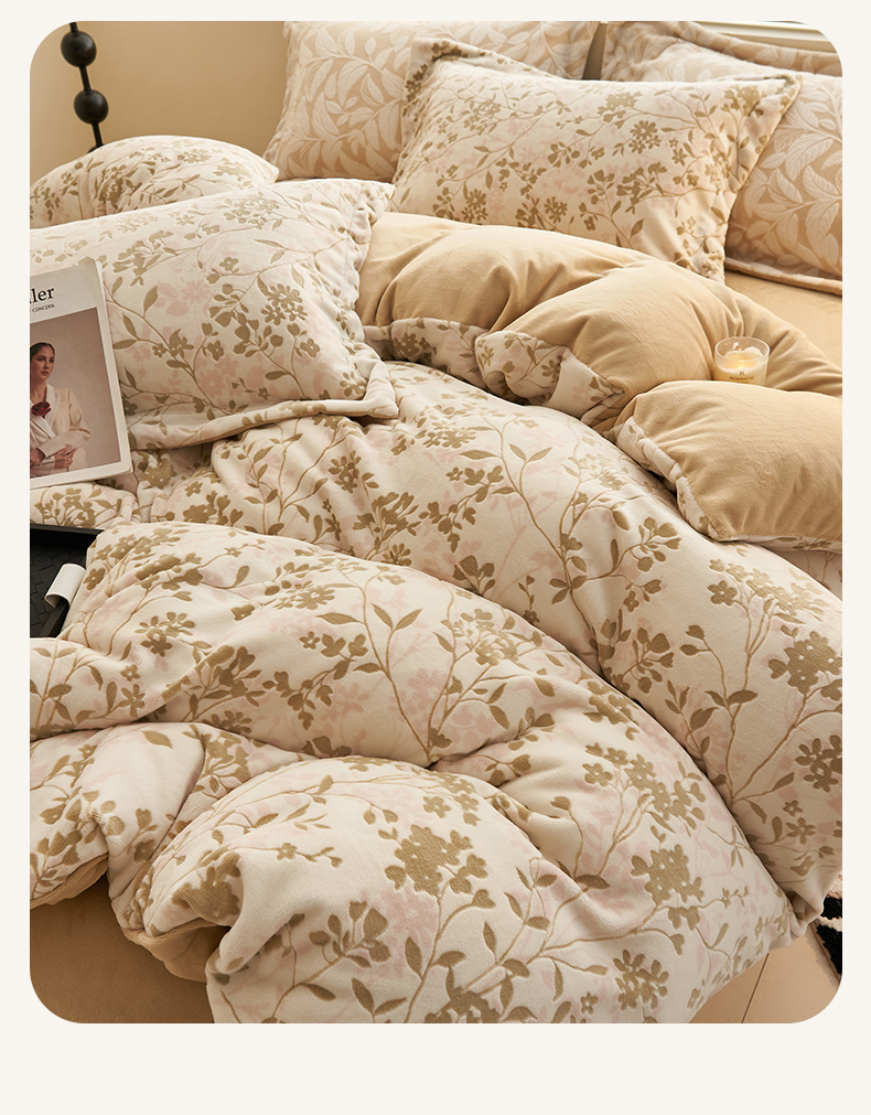 恒爱家纺 2025新款牛奶绒立体剪花四件套 漫步时光-浅咖