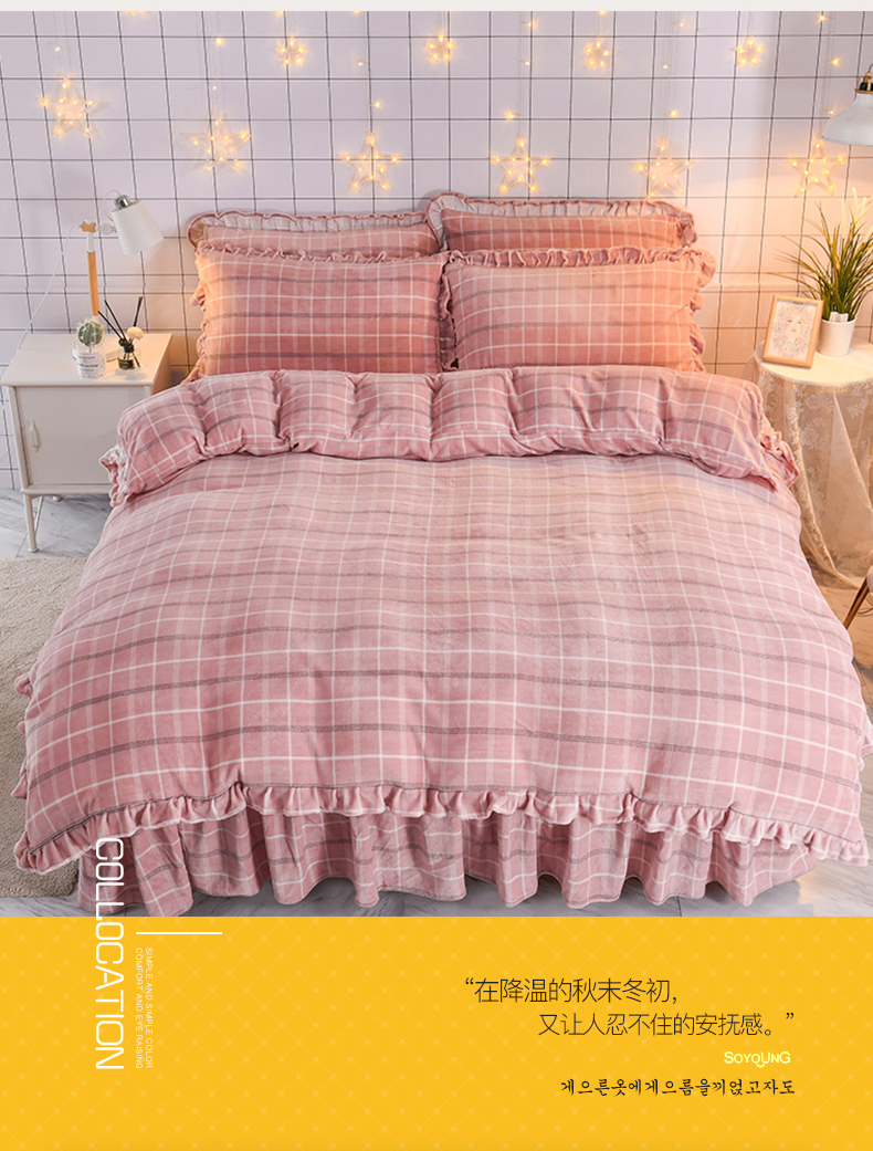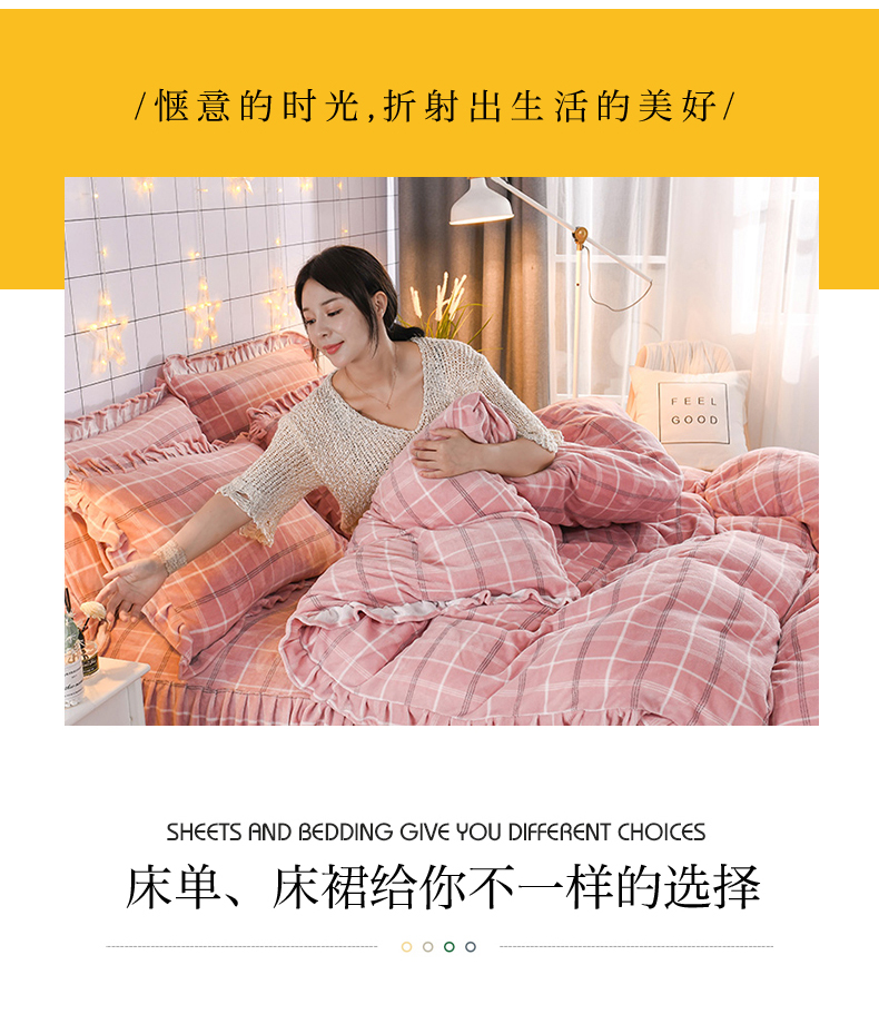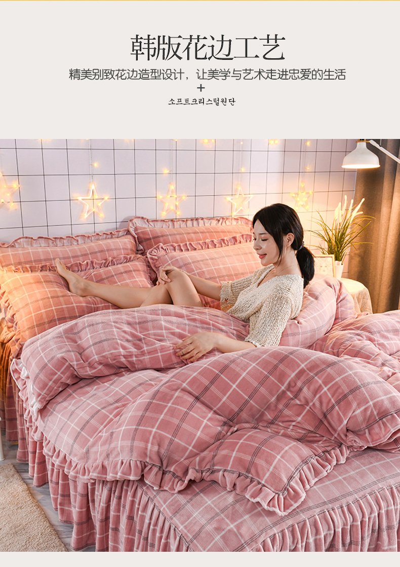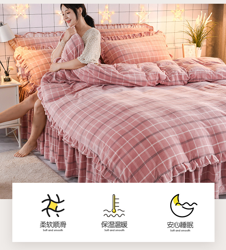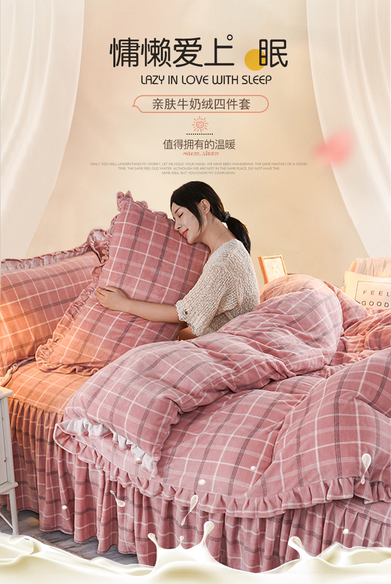 商品名称:睡美人 2025新款韩版印花牛奶绒床裙款四件套 草莓派