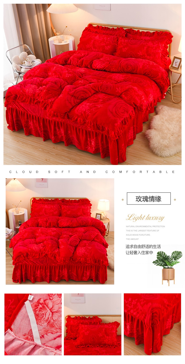 (总)睡美人 2025新款亲肤舒适牛奶绒单品系列单床裙单品床裙单件床裙,车厘子红,大红色,公主粉,酒红色,孔雀绿,气质灰,石榴红,星空蓝,薰衣紫,阳光橙