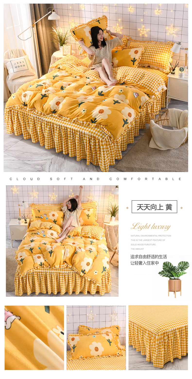 (总)睡美人 2025新款韩版印花牛奶绒床裙款四件套,宝格-粉,贝贝熊-咖,草莓派,格调豆沙,玫瑰情缘,天天向上 黄