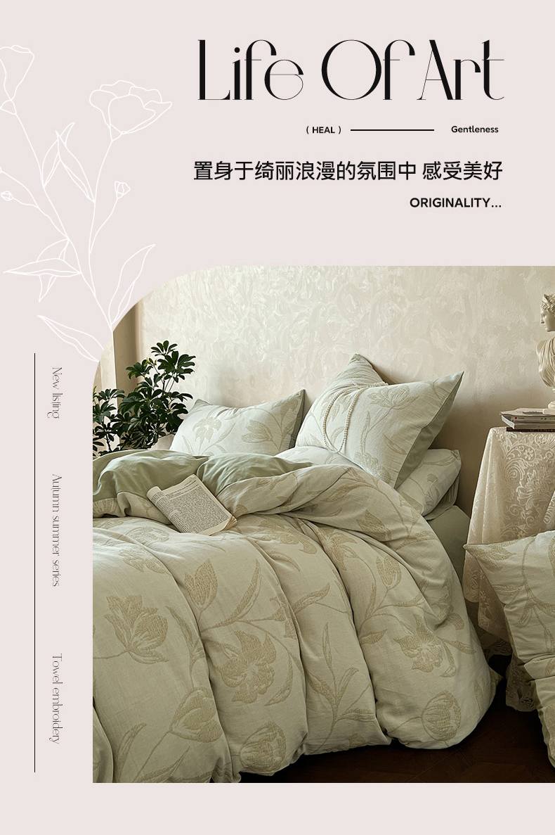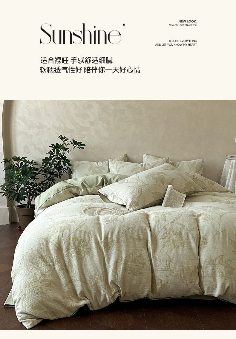 (总)田野 2025新款全棉水洗棉提花锦绣系列四件套,锦绣-灰,锦绣-卡其,锦绣-绿
