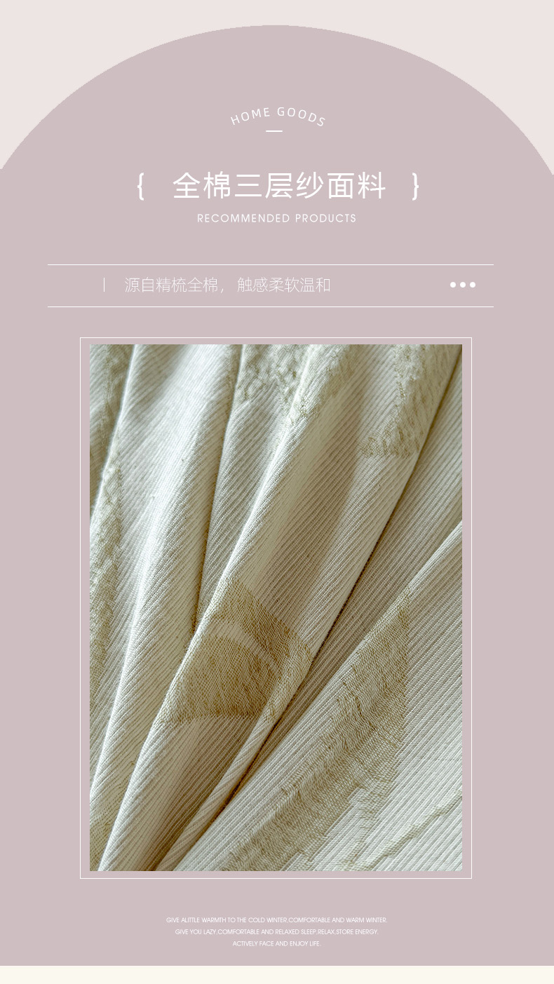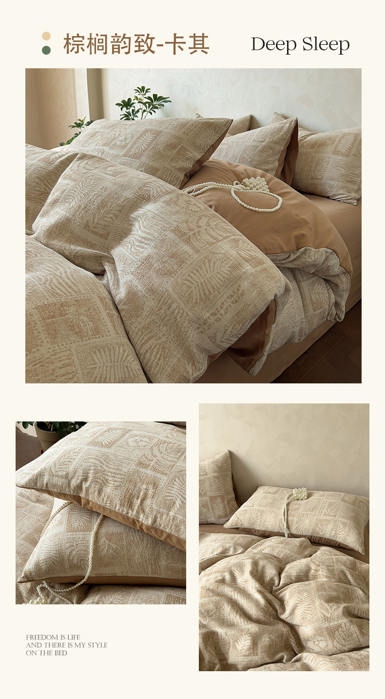 商品名称:田野 2025新款全棉三层纱提花磨毛系列四件套 棕榈韵致-卡其