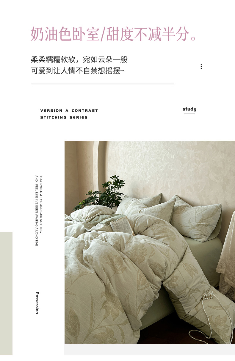 (总)田野2025新款全棉皱皱纱四件套,半夏-粉,半夏-蓝,时予-黄灰,时予-灰绿,时予-桔兰,小半-粉米,小半-绿紫,小半-奶茶棕,小半-亚麻棕
