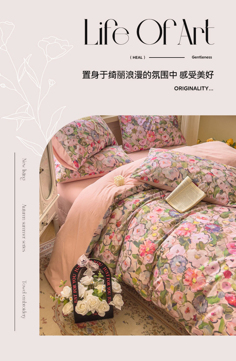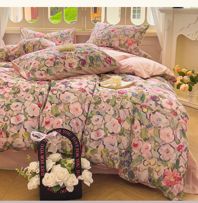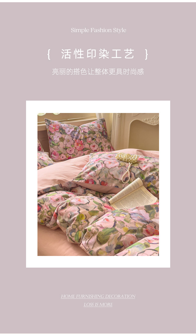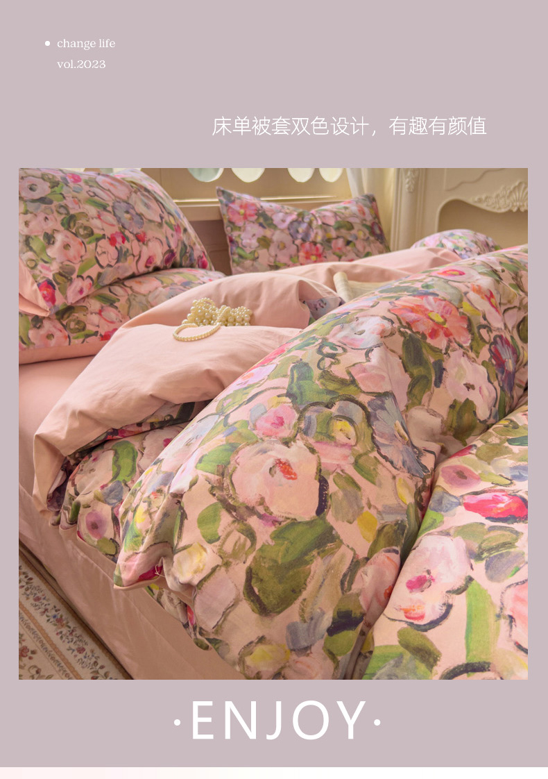 (总)田野 2022新款水洗棉小清新小碎花全棉四件套,花丛,花涧,绿婉,曼舞,桃夭,甜馨草莓,兔兔,银杏