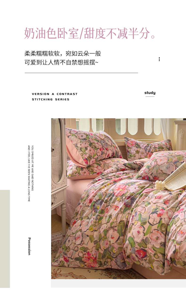 (总)田野 2022新款13372全棉小清新小碎花四件套,嘟嘟奶牛,粉诺,浮光,海豚之恋,花梦-黄,花梦-紫,花束,花田,景色,梨落,曼秋,奇异果,晴天,圈圈点点,躺着逆袭,西米,摇曳,樱花粉