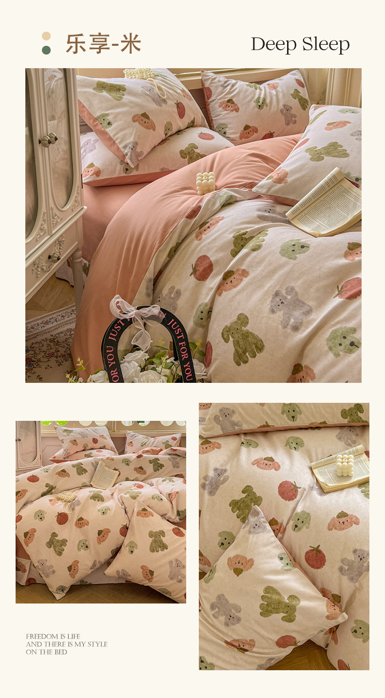 (总)田野 2023新款全棉A类贝壳边双层纱四件套,饼干熊,波波兔,呆萌熊,萌宠乐园,萌兔森林,甜心小兔,薇拉,小蘑菇,伊甜