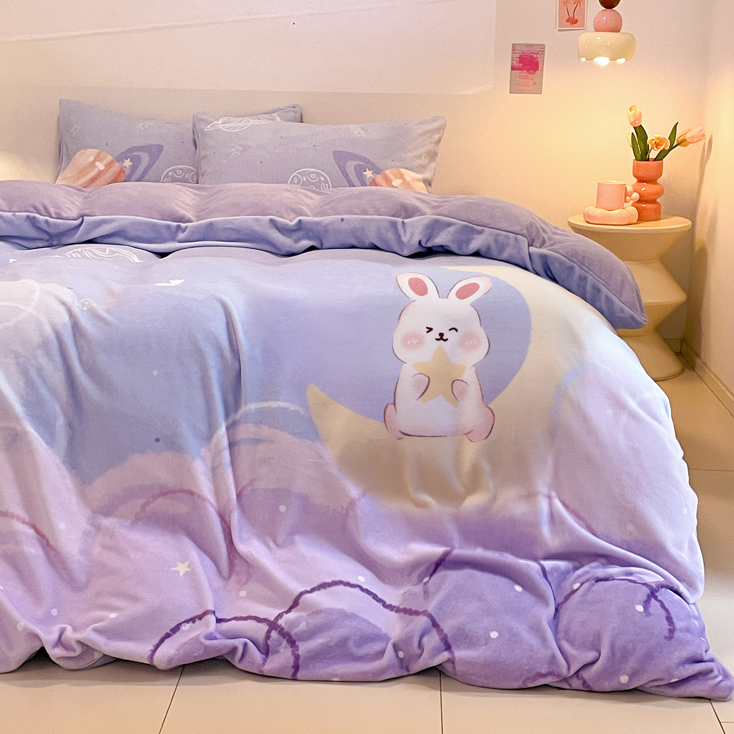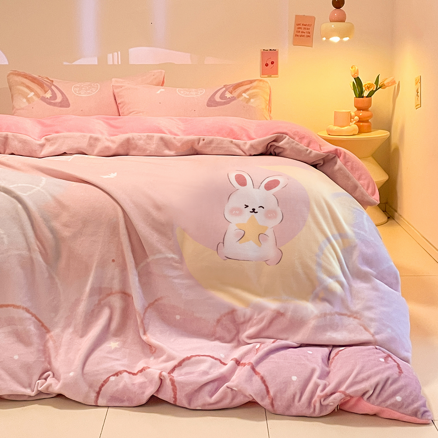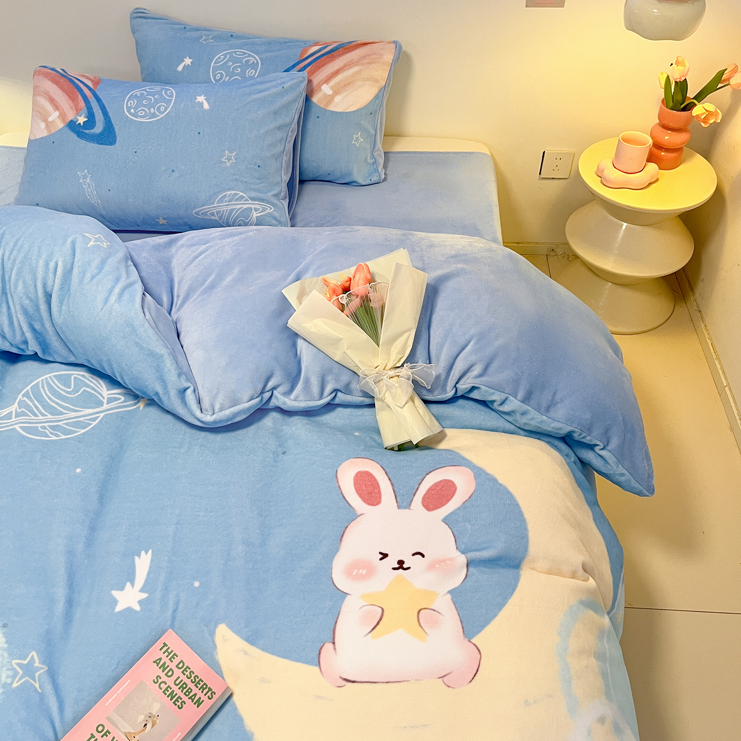 当前位置: 91家纺网 > 商品网购 > 床品套件 > 四件套 > 牛奶绒四件套 > (总)控价 2025年新款 专版花型 240克全消光A类儿童牛奶绒四件套-萌萌兔