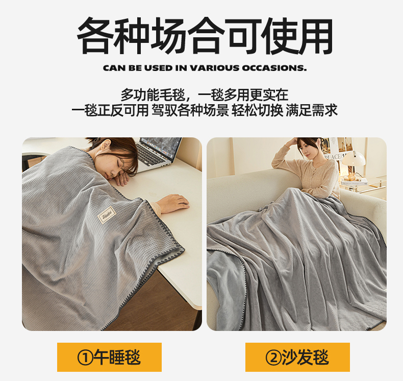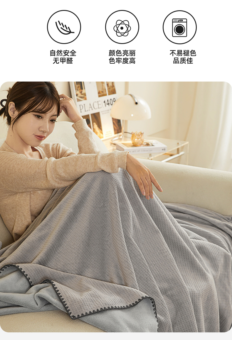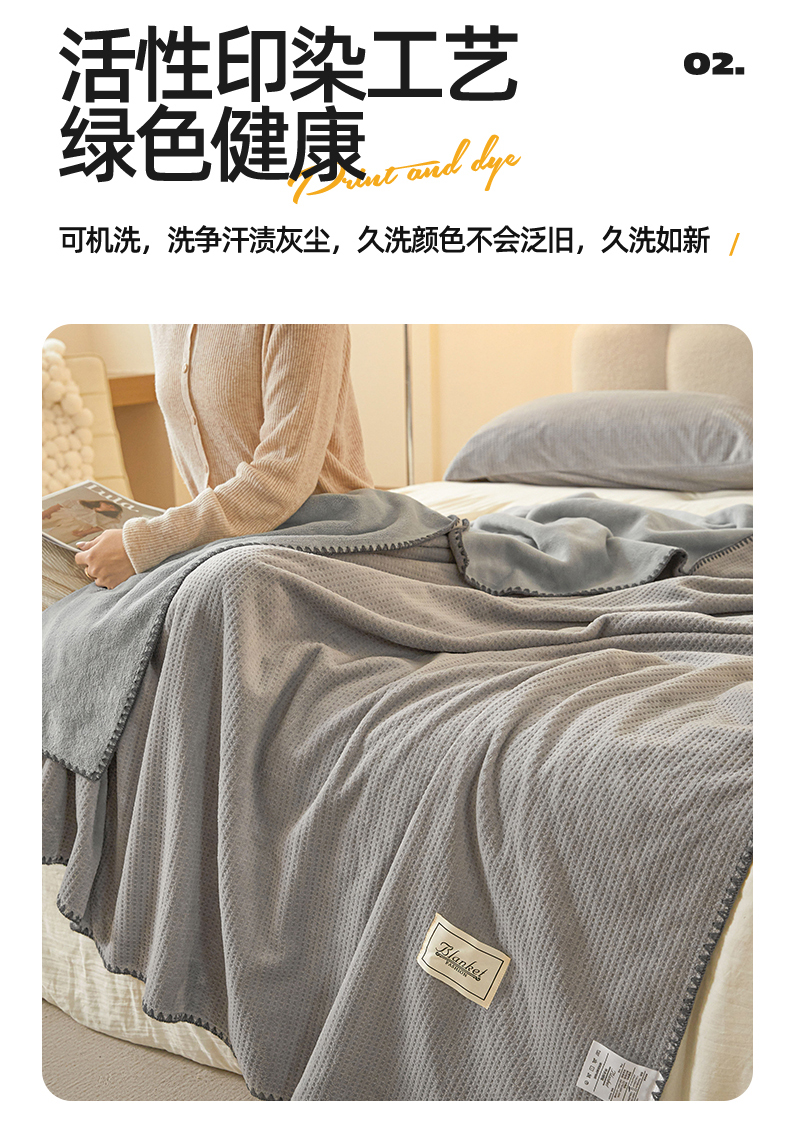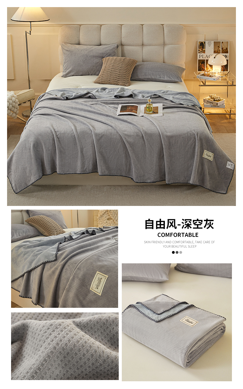 雯豆家纺 2025新品华夫格毛毯盖毯双层加厚办公室披肩毯子 自由风-深空灰