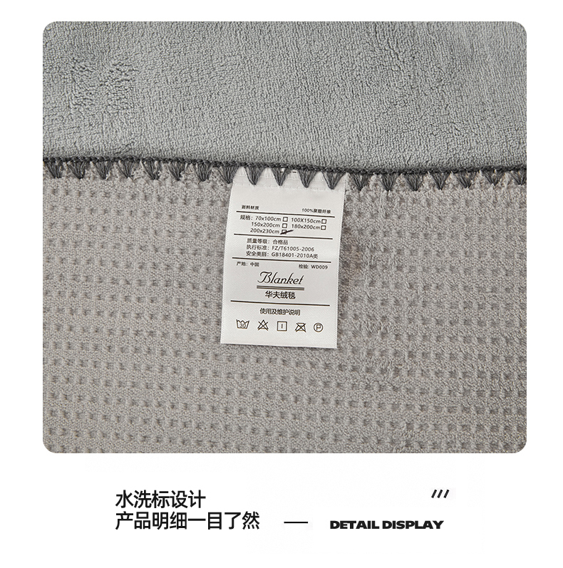 商品名称:雯豆家纺 2025新品华夫格毛毯盖毯双层加厚办公室披肩毯子 自由风-深空灰