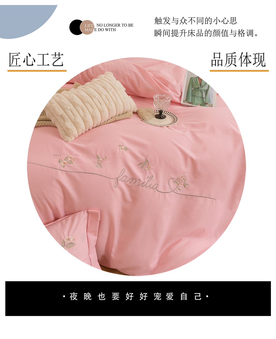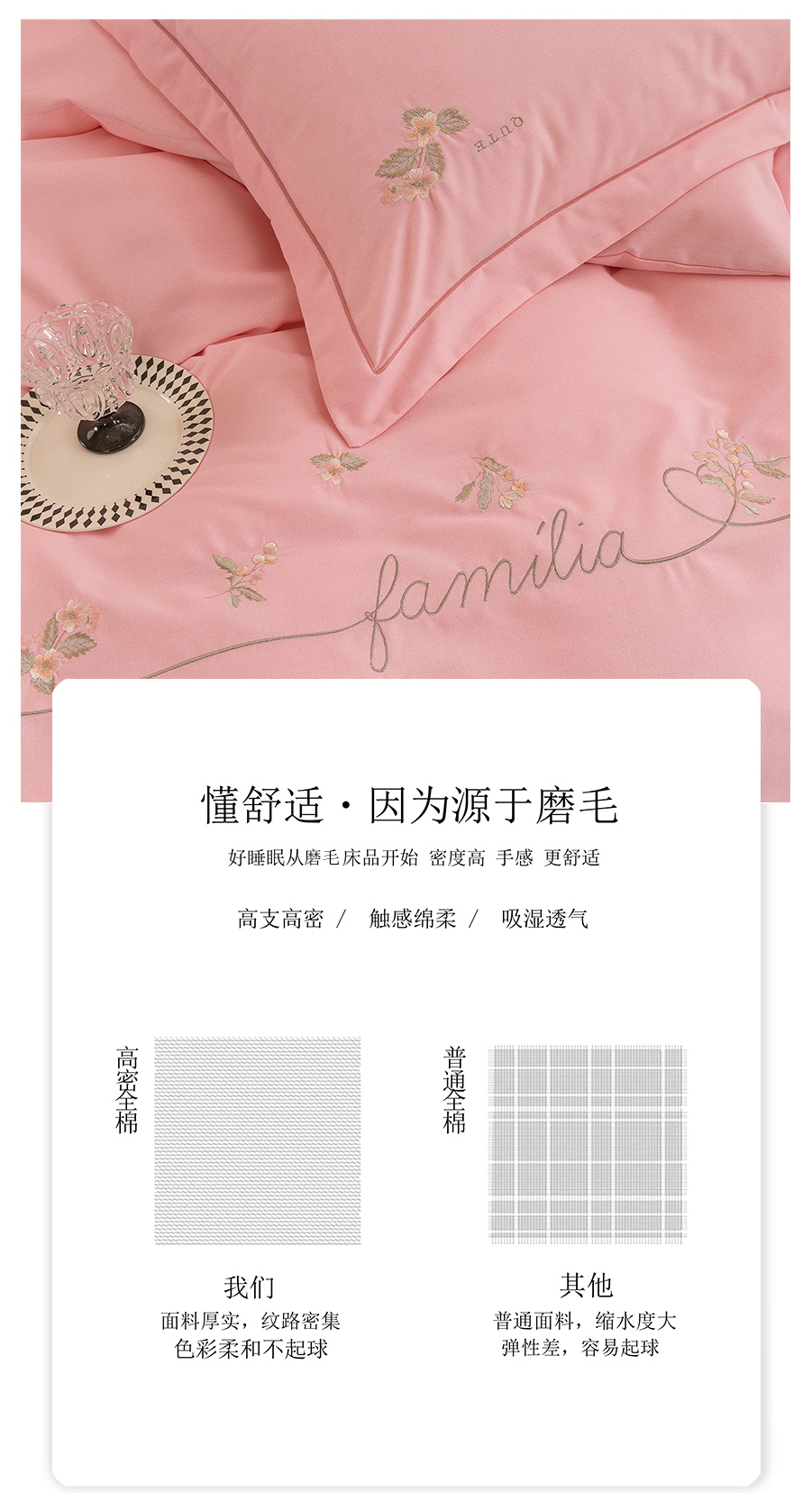 (总)绒博士 2025新款270克牛奶绒双拼角刺绣宽边款四件套--维也纳系列,维也纳-粉豆沙,维也纳-果绿,维也纳-浅咖,维也纳-浅蓝