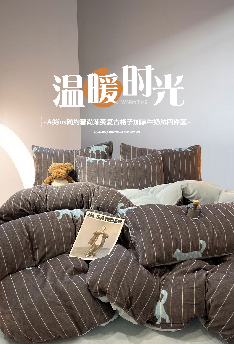 当前位置: 91家纺网 > 商品网购 > 床品套件 > 四件套 > 牛奶绒四件套 > 桃子家居 2025新款A类ins简约奢尚渐变复古格子加厚牛奶绒四件套 绒-奢尚派