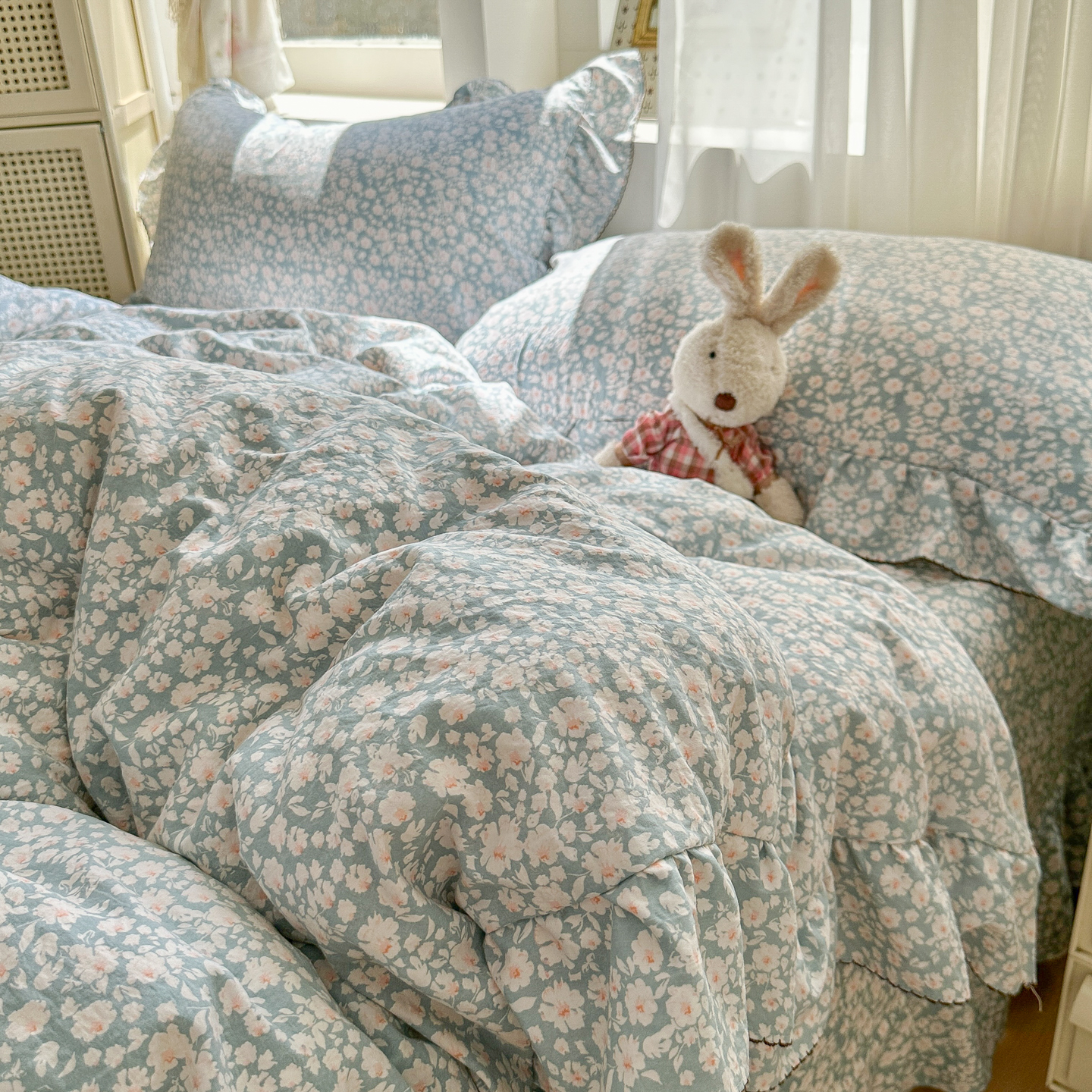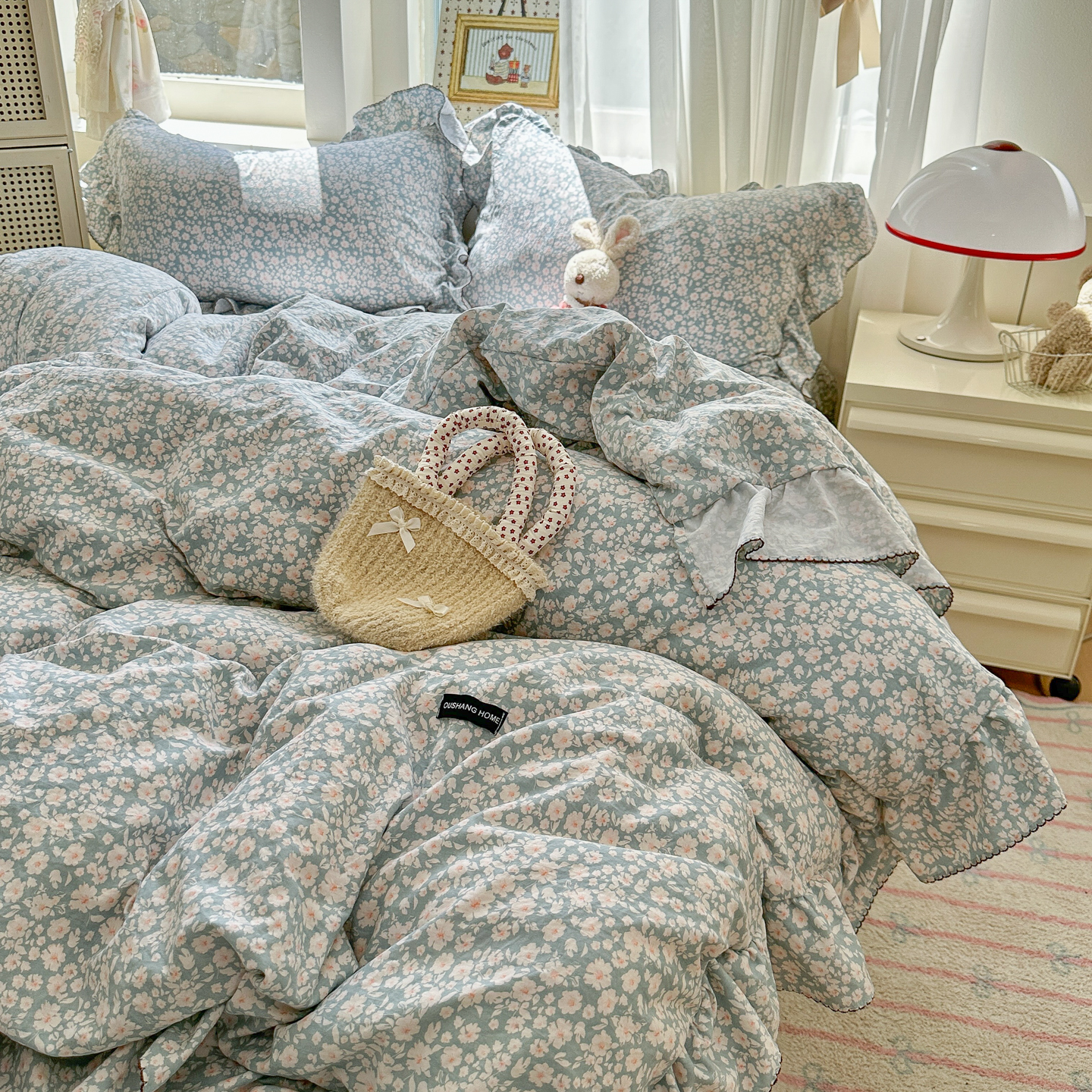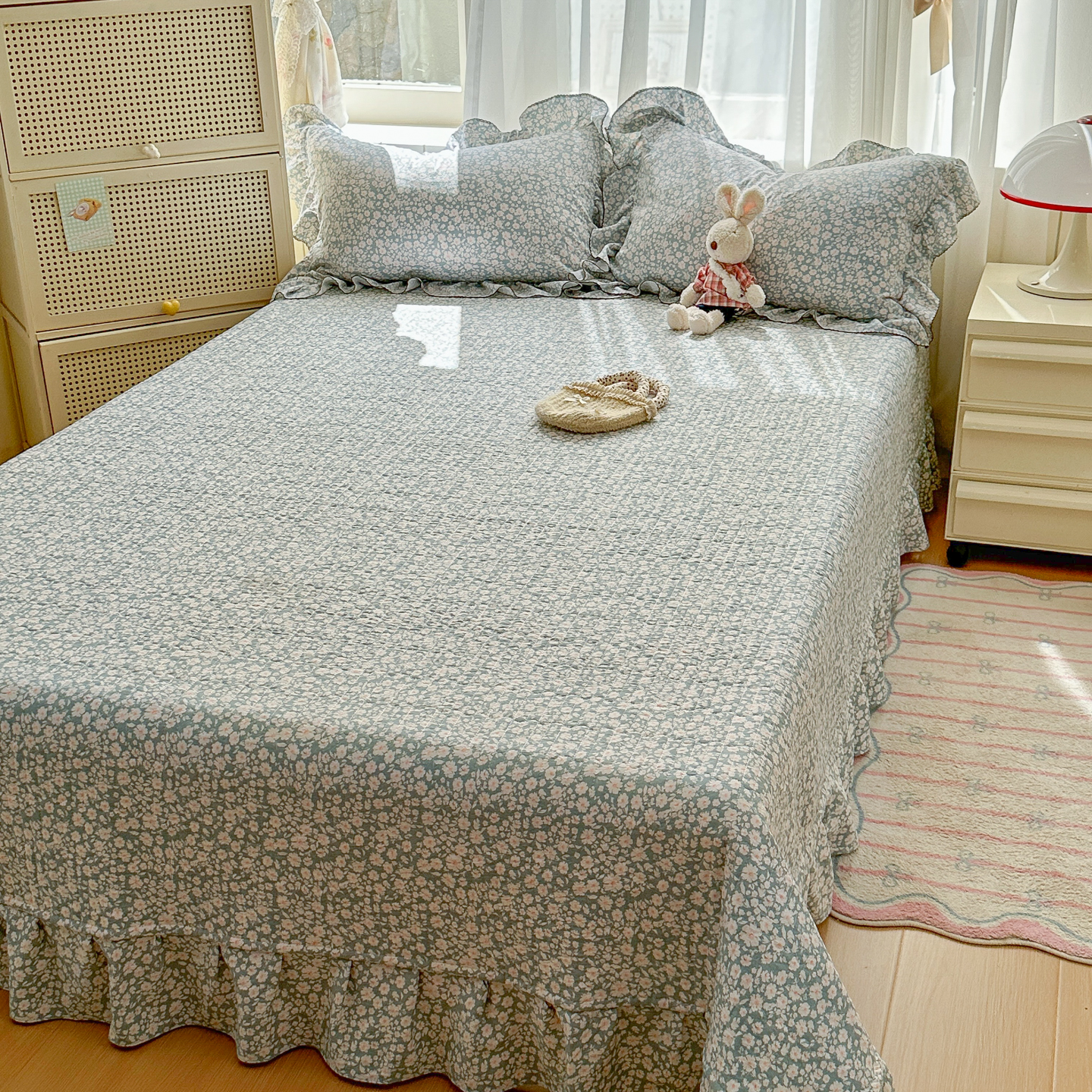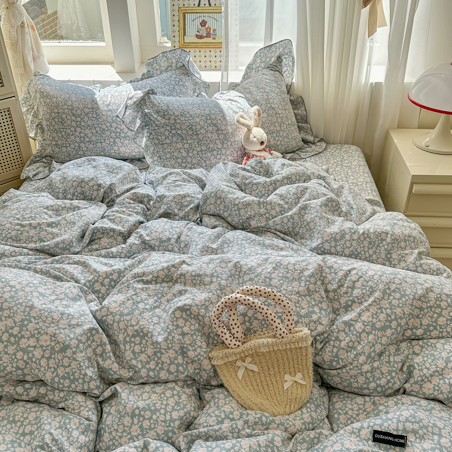 (总)欧尚 2026新款花边床盖四件套,春和,花束,花野,灰樱桃,咖爱心,咖豹纹,咖啡小猫,梨花落,绿爱心,梦境,木马,奶油波点,暖橘枝,暖心,人间草木,田园兔,小女孩,星愿,摇摇马,紫爱心,紫豹纹,紫苏
