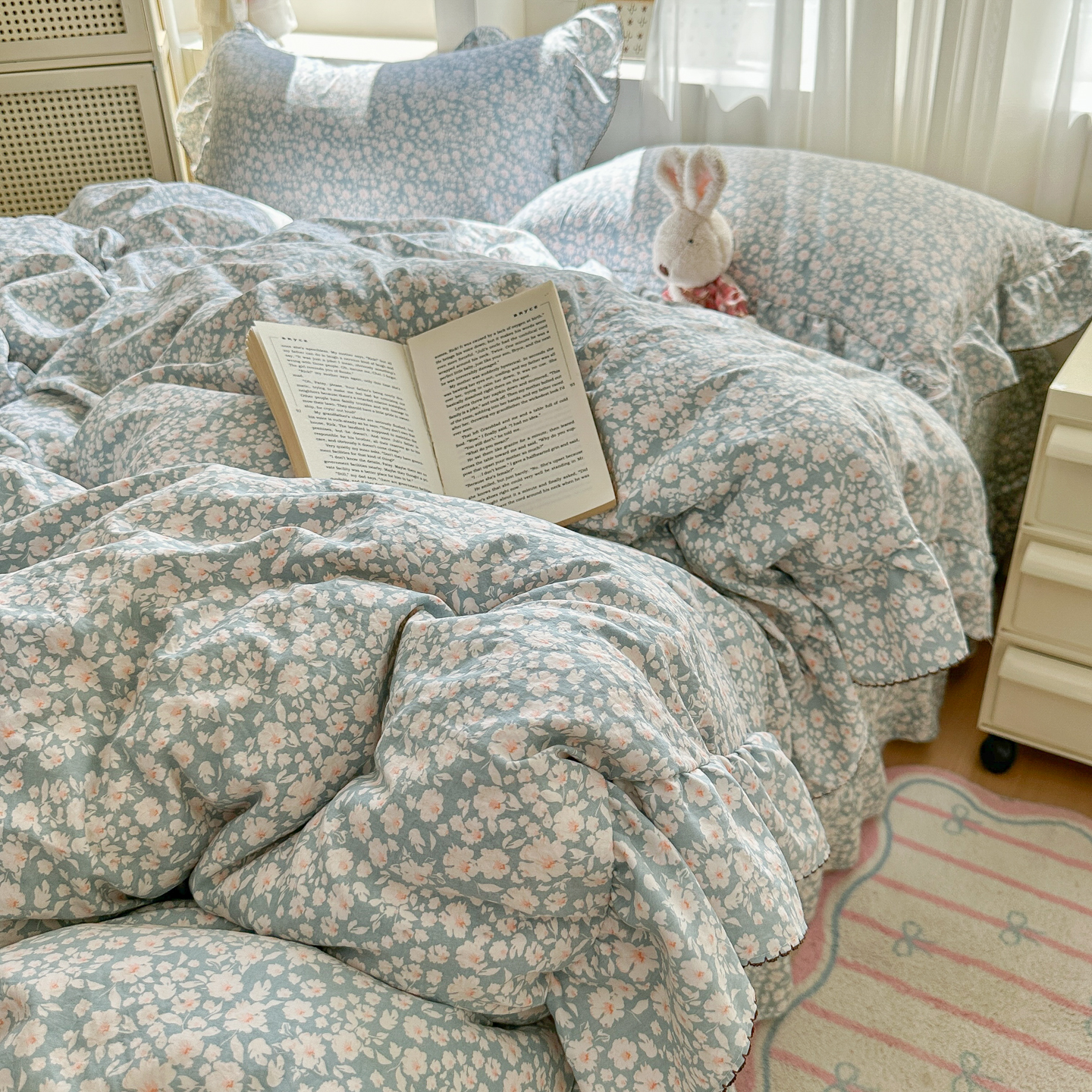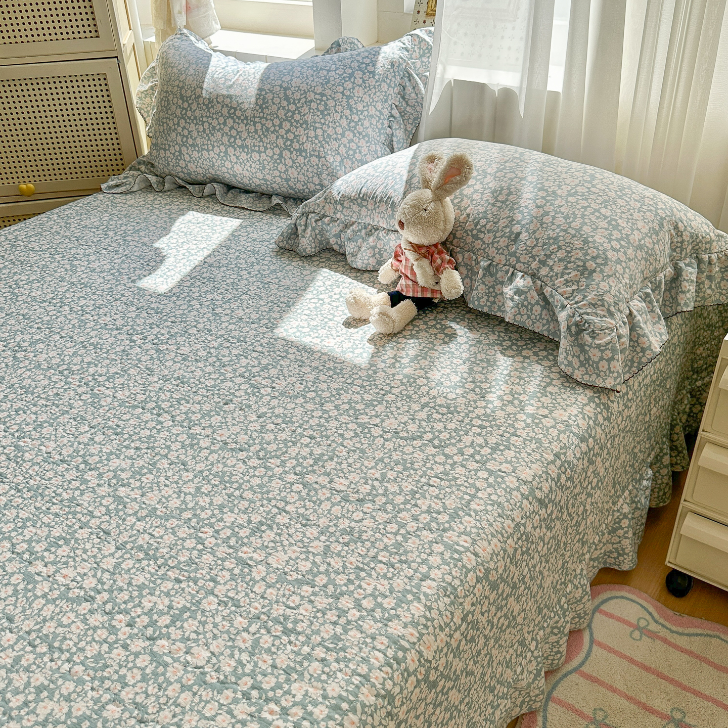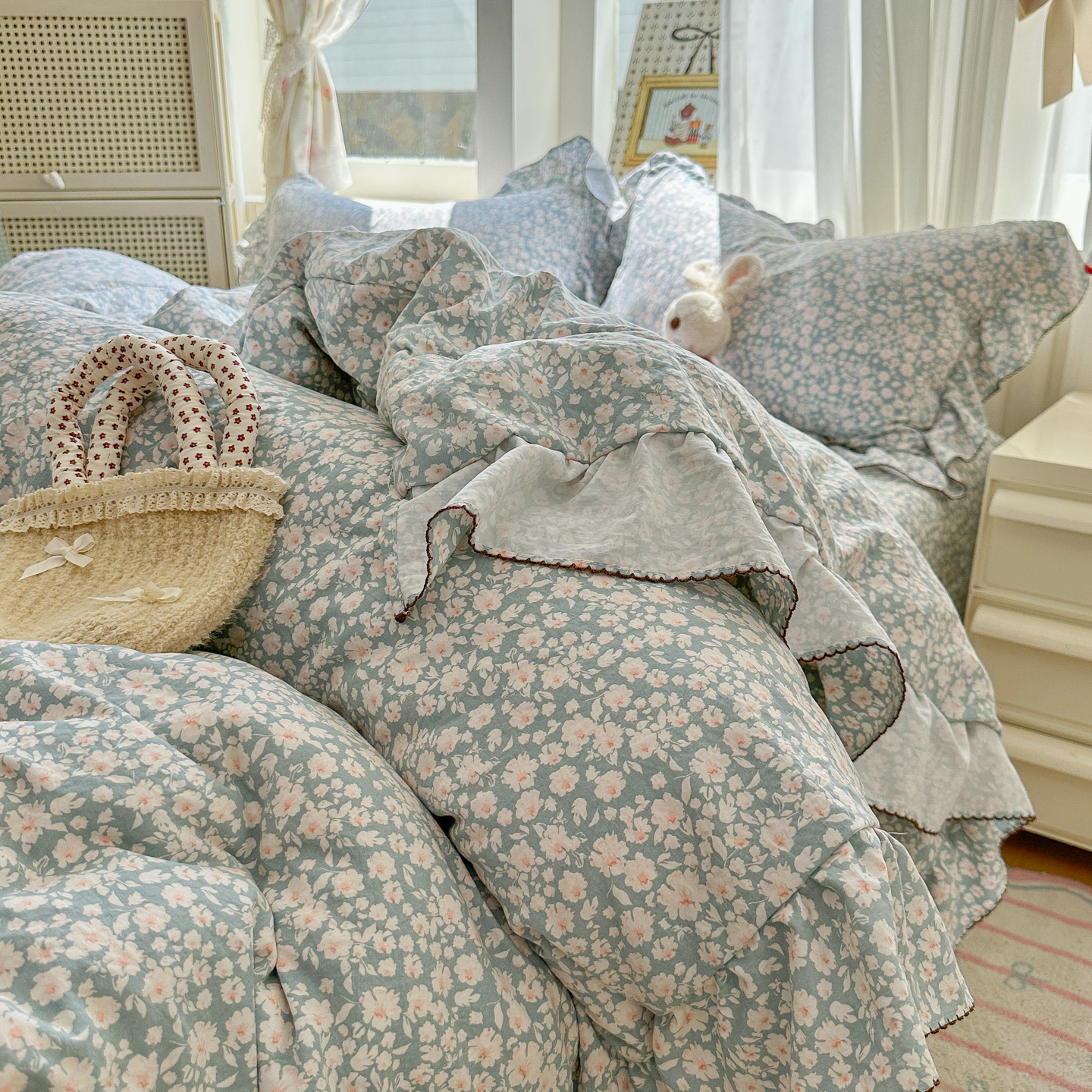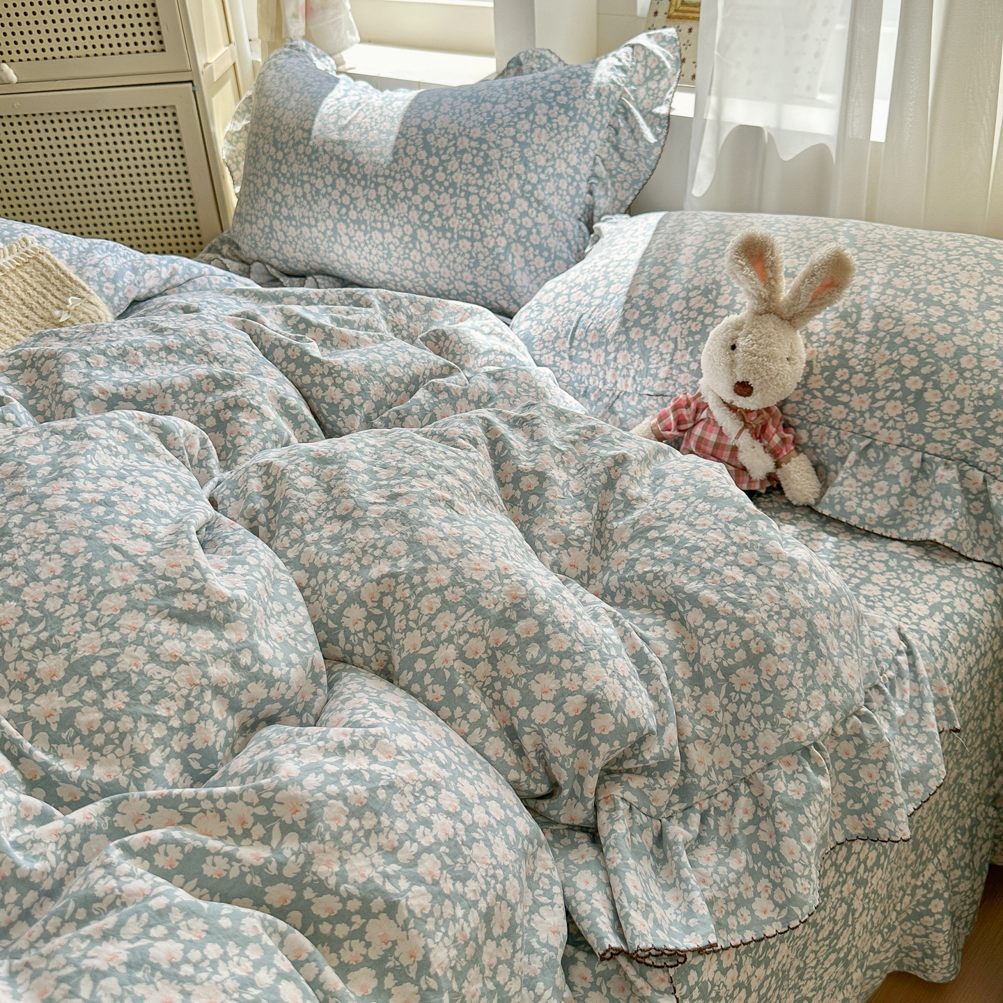 (总)欧尚 2026新款花边床盖四件套,春和,花束,花野,灰樱桃,咖爱心,咖豹纹,咖啡小猫,梨花落,绿爱心,梦境,木马,奶油波点,暖橘枝,暖心,人间草木,田园兔,小女孩,星愿,摇摇马,紫爱心,紫豹纹,紫苏