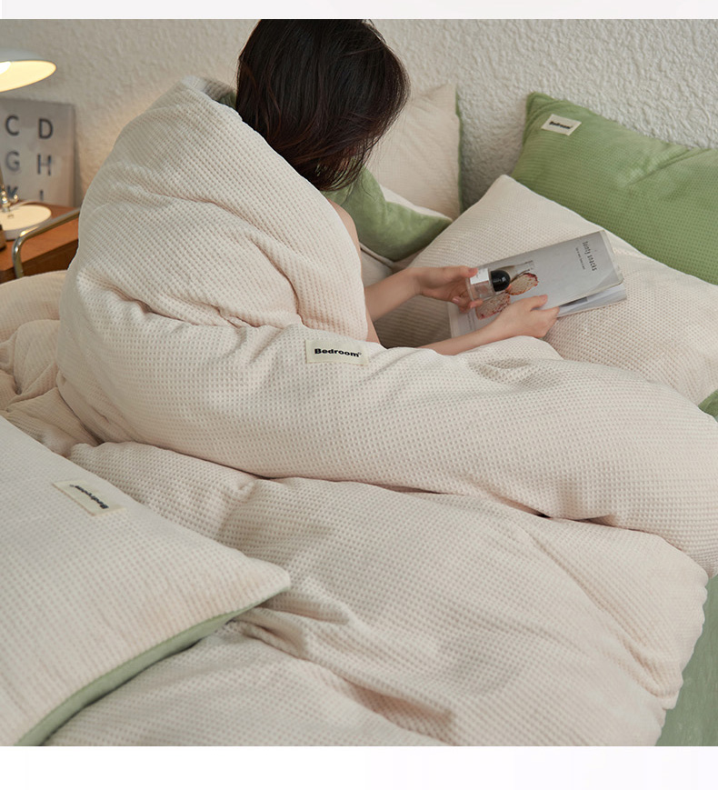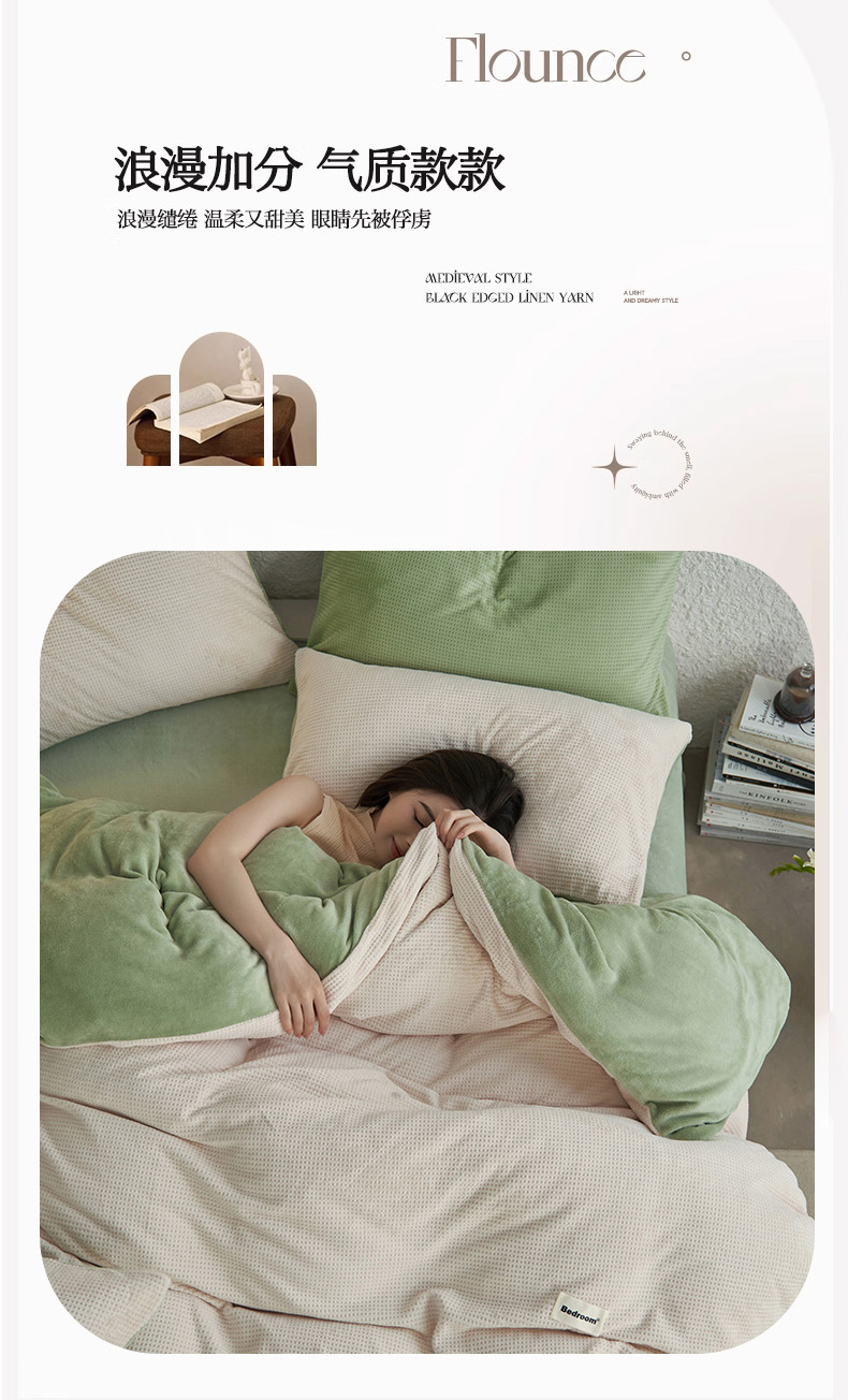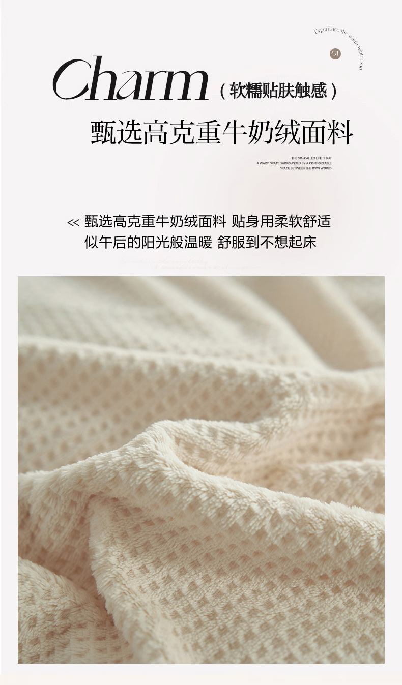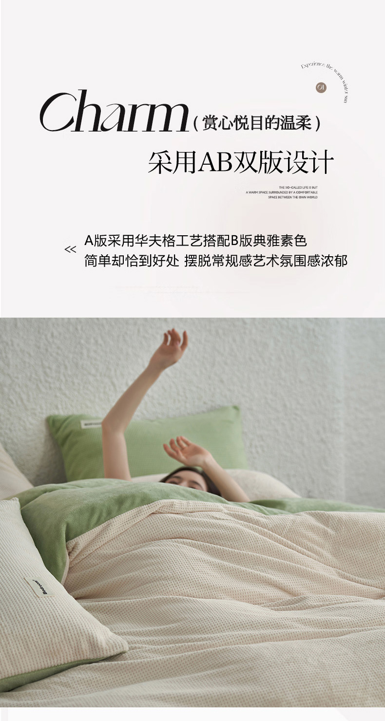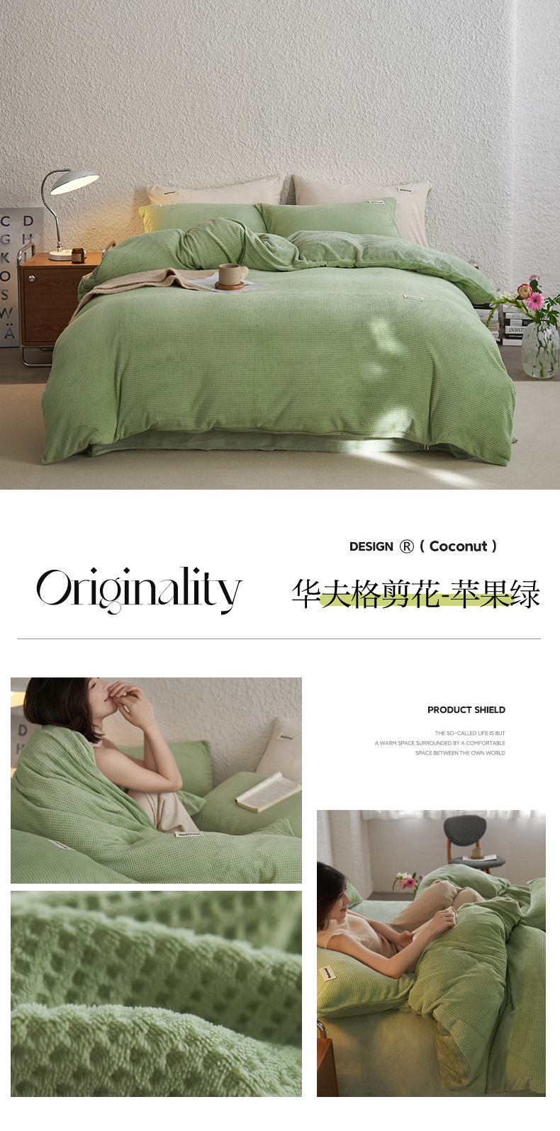 当前位置: 91家纺网 > 商品网购 > 床品套件 > 四件套 > 华夫格四件套 > 眠博士 2025新款华夫格剪花牛奶绒加厚保暖四件套 华夫格剪花-白-绿