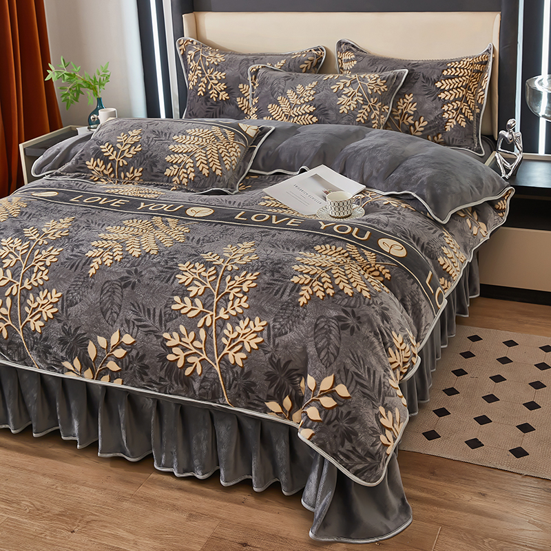 商品名称:凤杰 2025新款高克重7斤加厚印花牛奶绒金貂法莱绒四件套 金枝玉叶