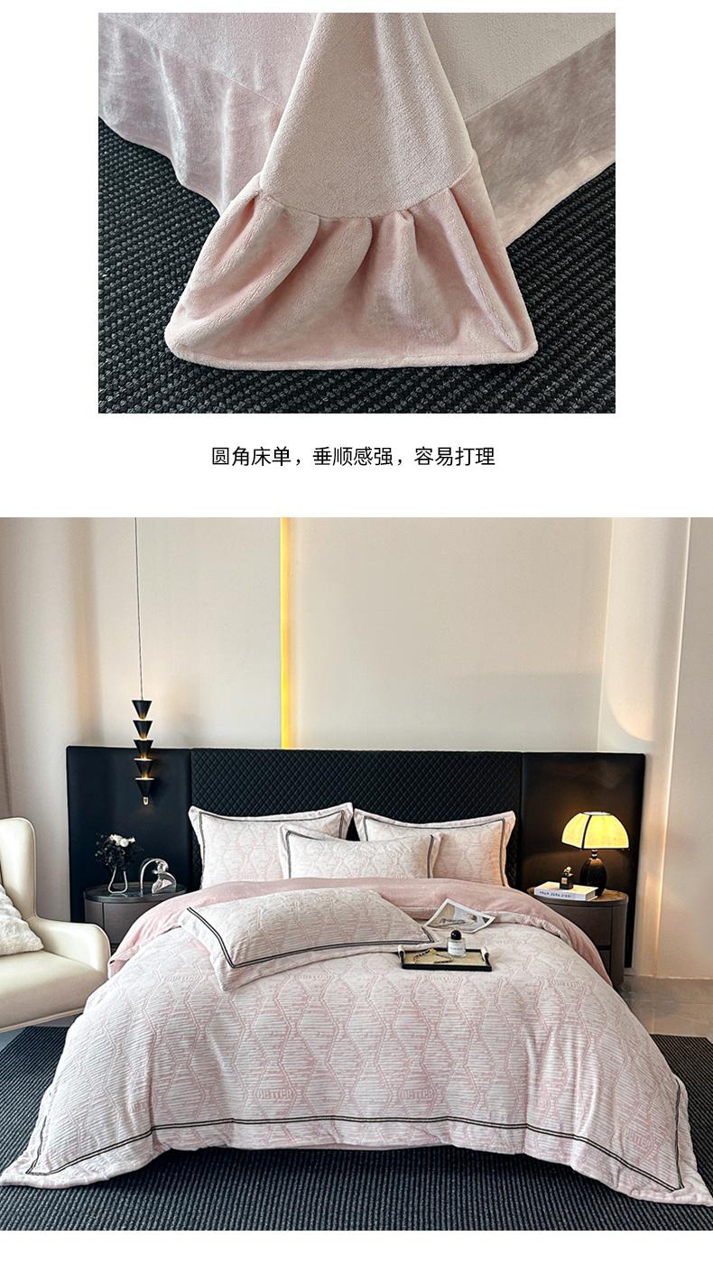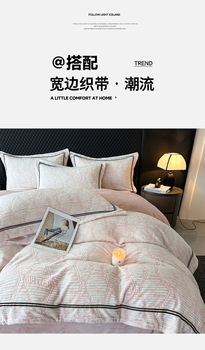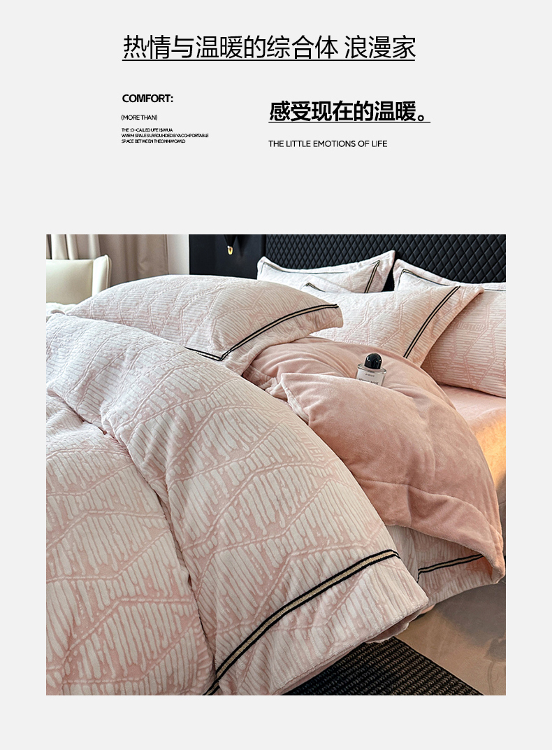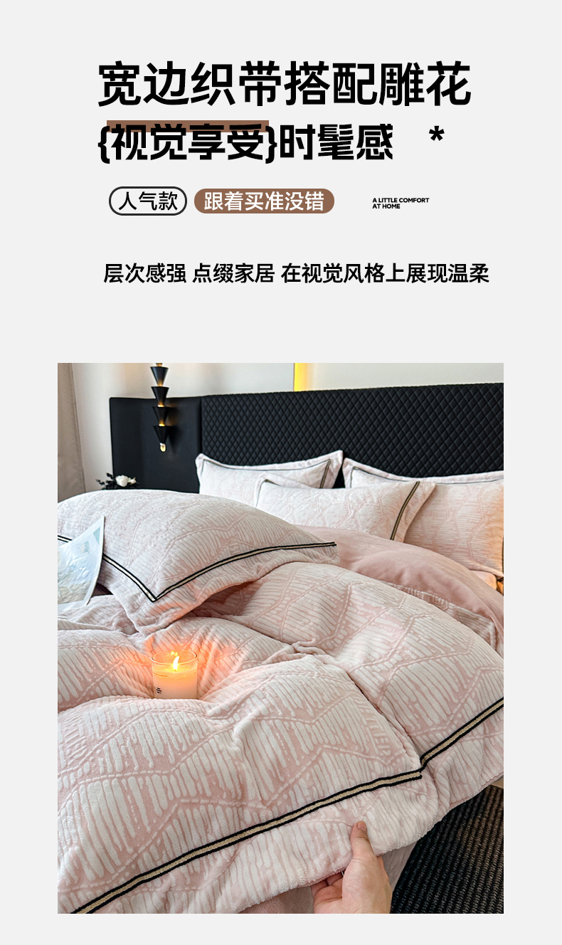 诺梵家纺 2025新款8.2斤宽边织带雕花绒牛奶绒四件套 云烟-粉