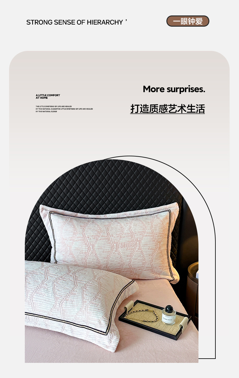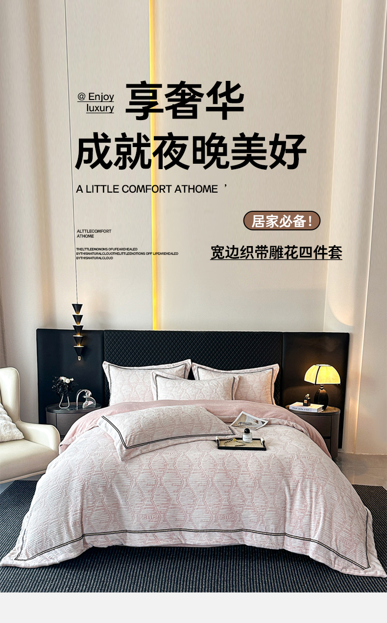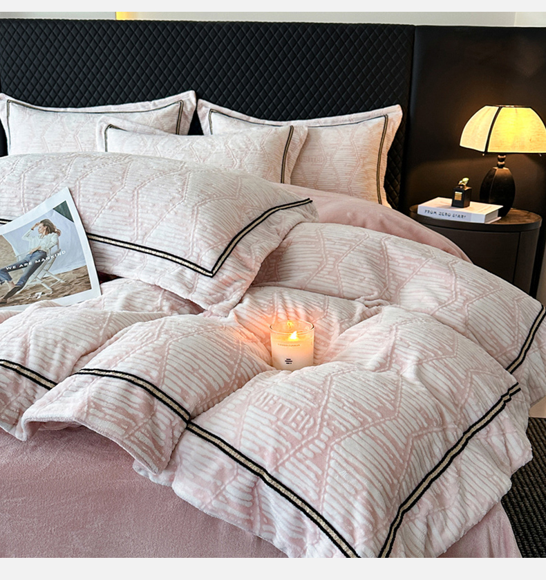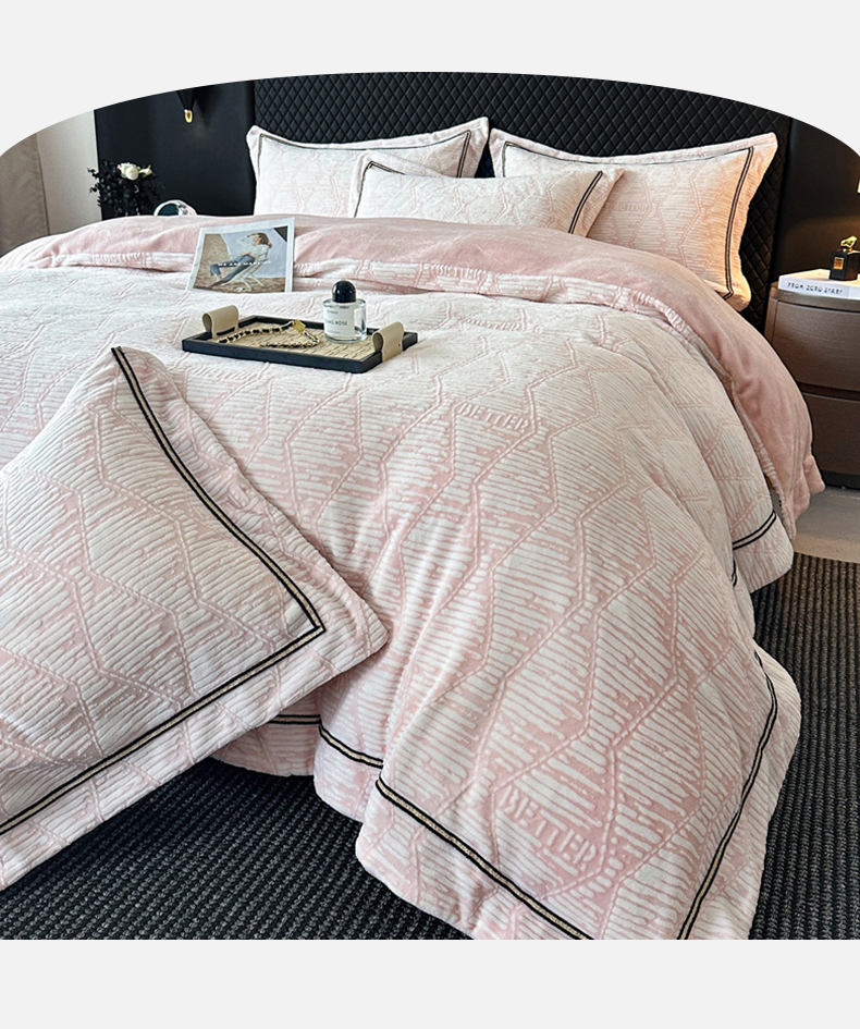 诺梵家纺 2025新款8.2斤宽边织带雕花绒牛奶绒四件套 云烟-粉