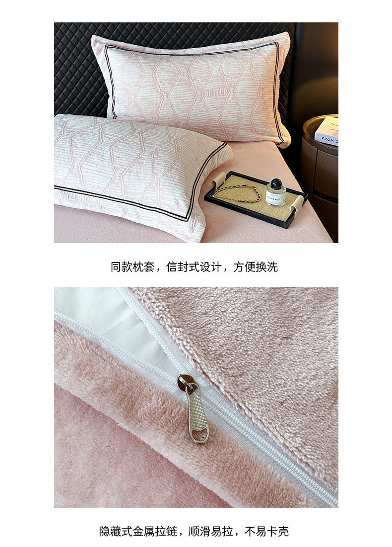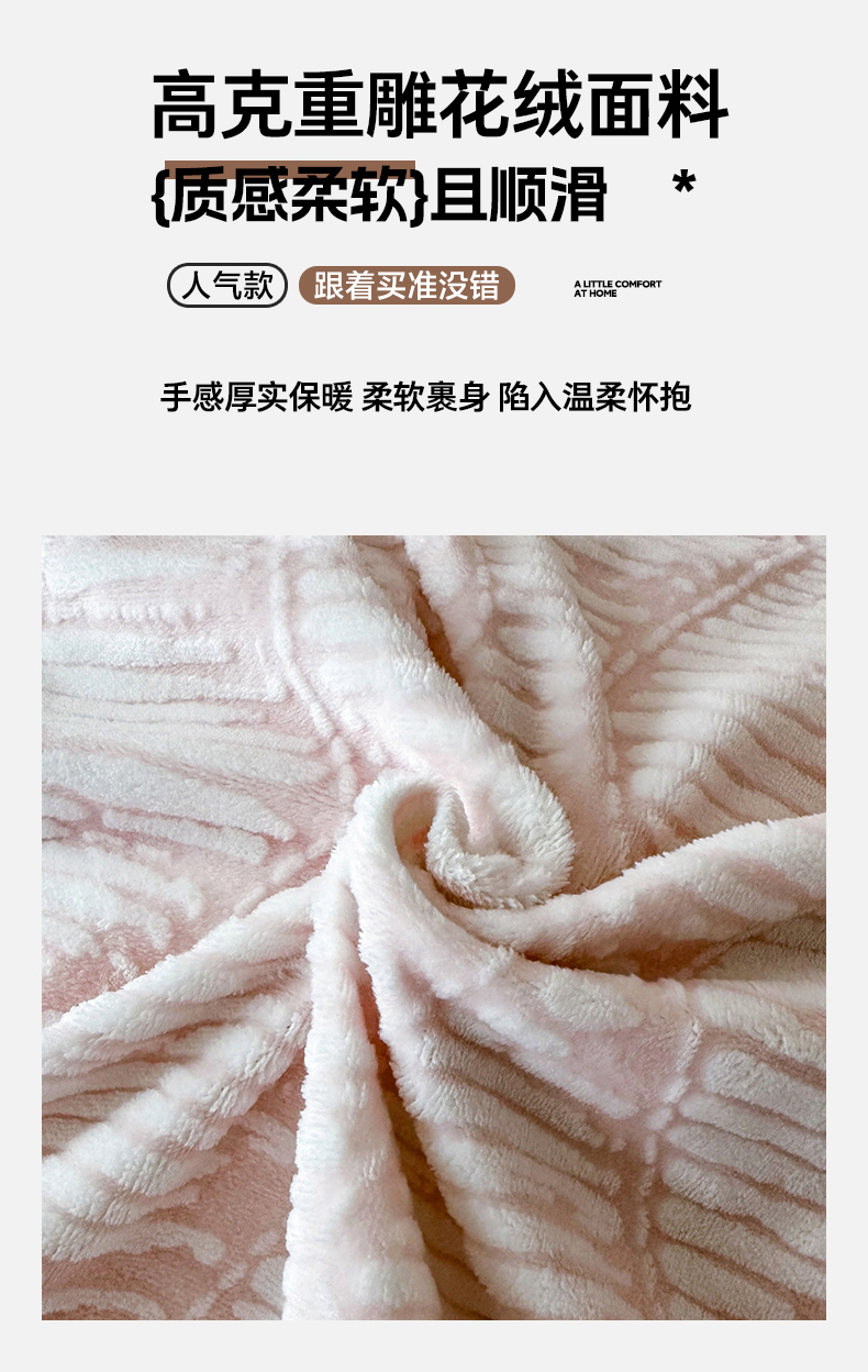 商品名称:诺梵家纺 2025新款8.2斤宽边织带雕花绒牛奶绒四件套 云烟-粉
